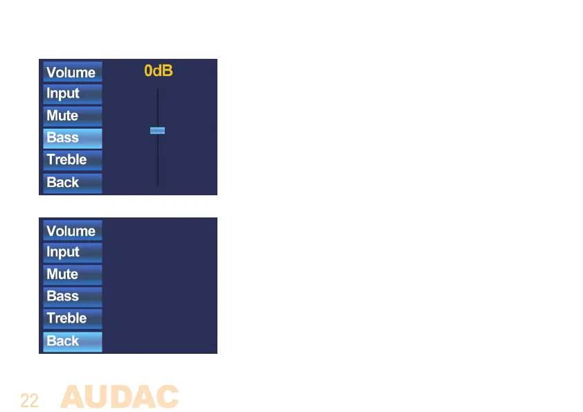 the “Bass” and “Treble” buttons, and the adjustment of the tone