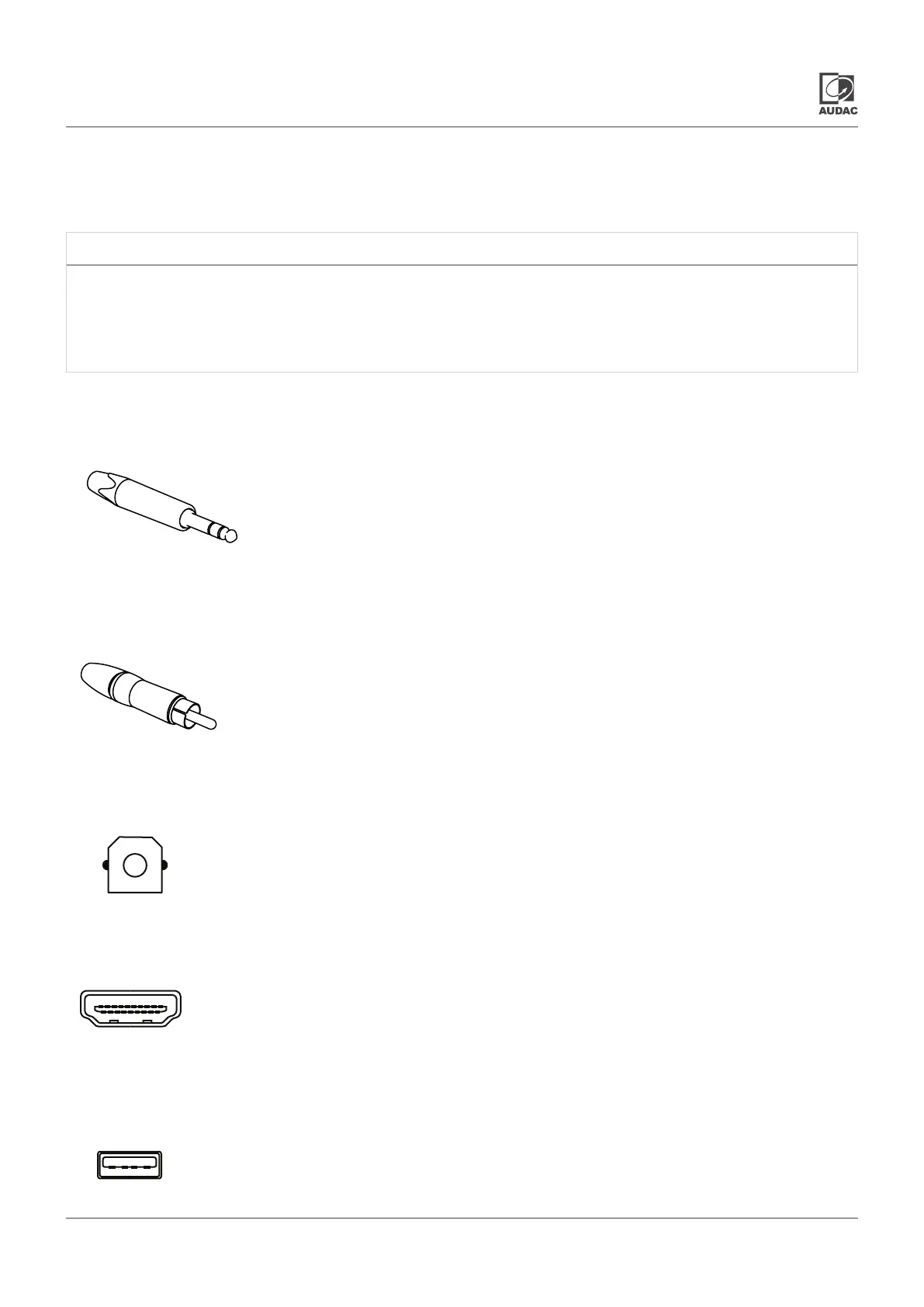 The in- and output connections for AUDAC audio equipment are performed according to international wiring
