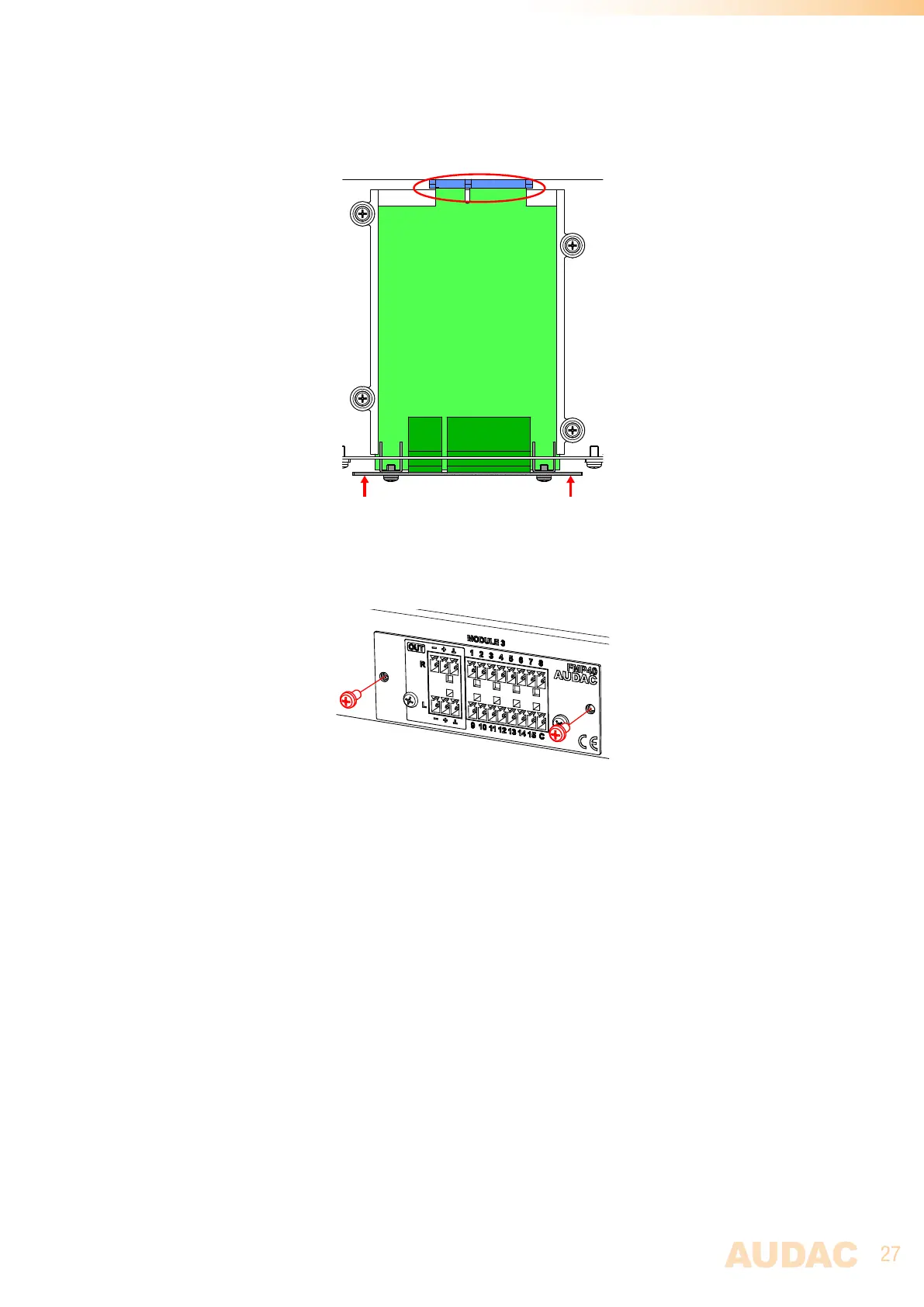 Fasten the module into the slot using the included screws. Be aware that damage or malfunctions may occur if the