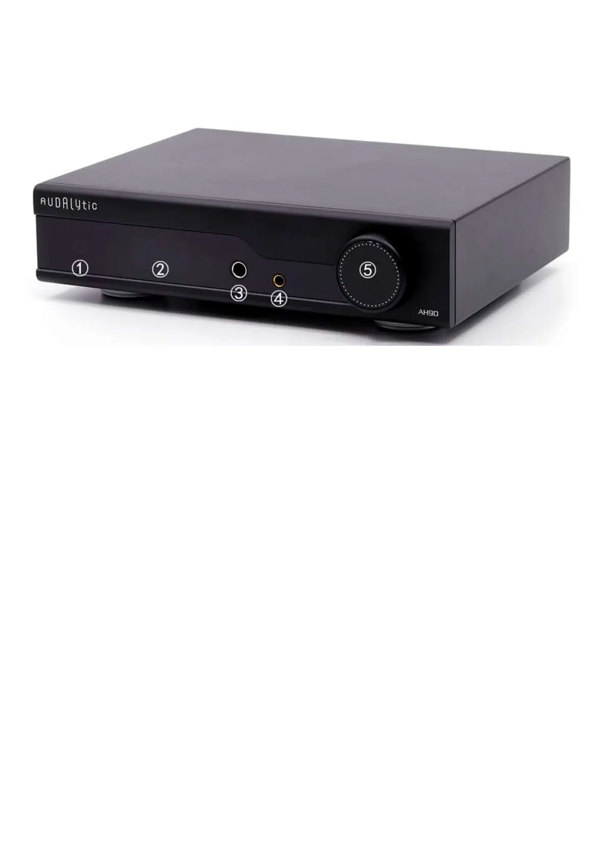 Audalytic AH90 - Front Panel; Power Button; Display Screen; Headphone Jacks