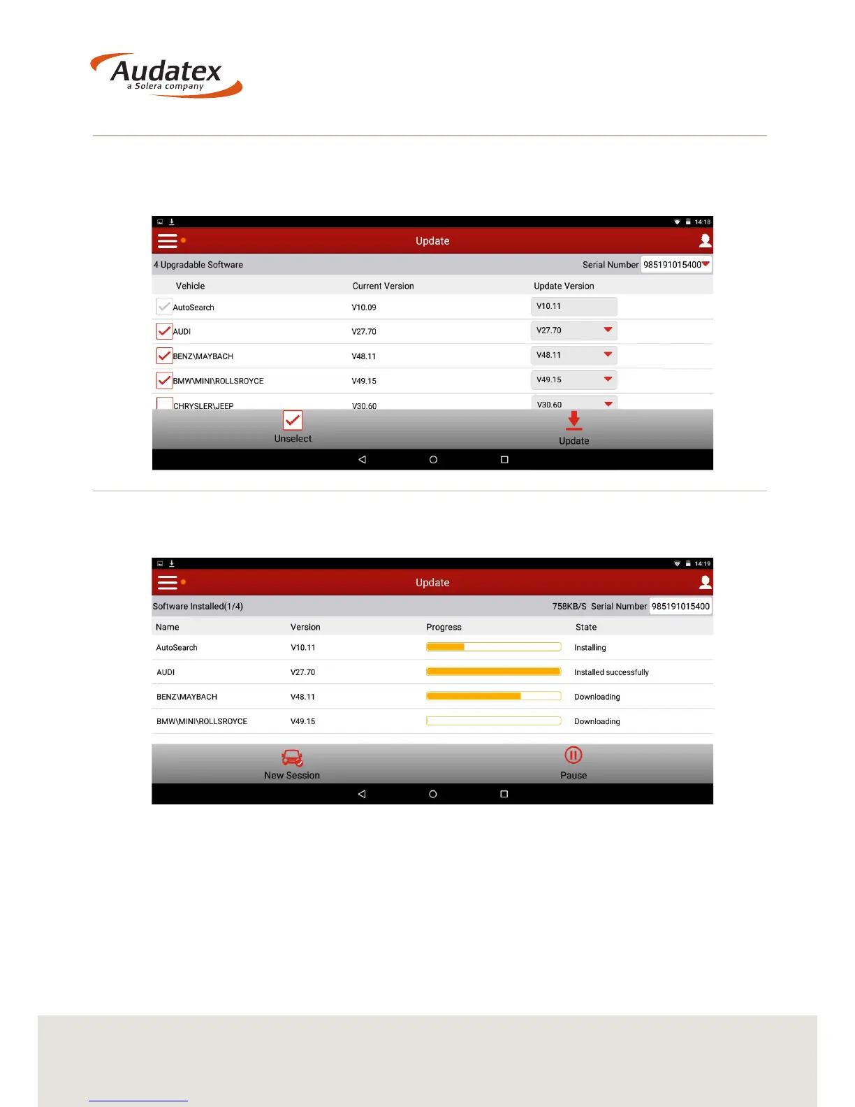 4. Selection of the Update icon at the bottom of the screen will begin the download