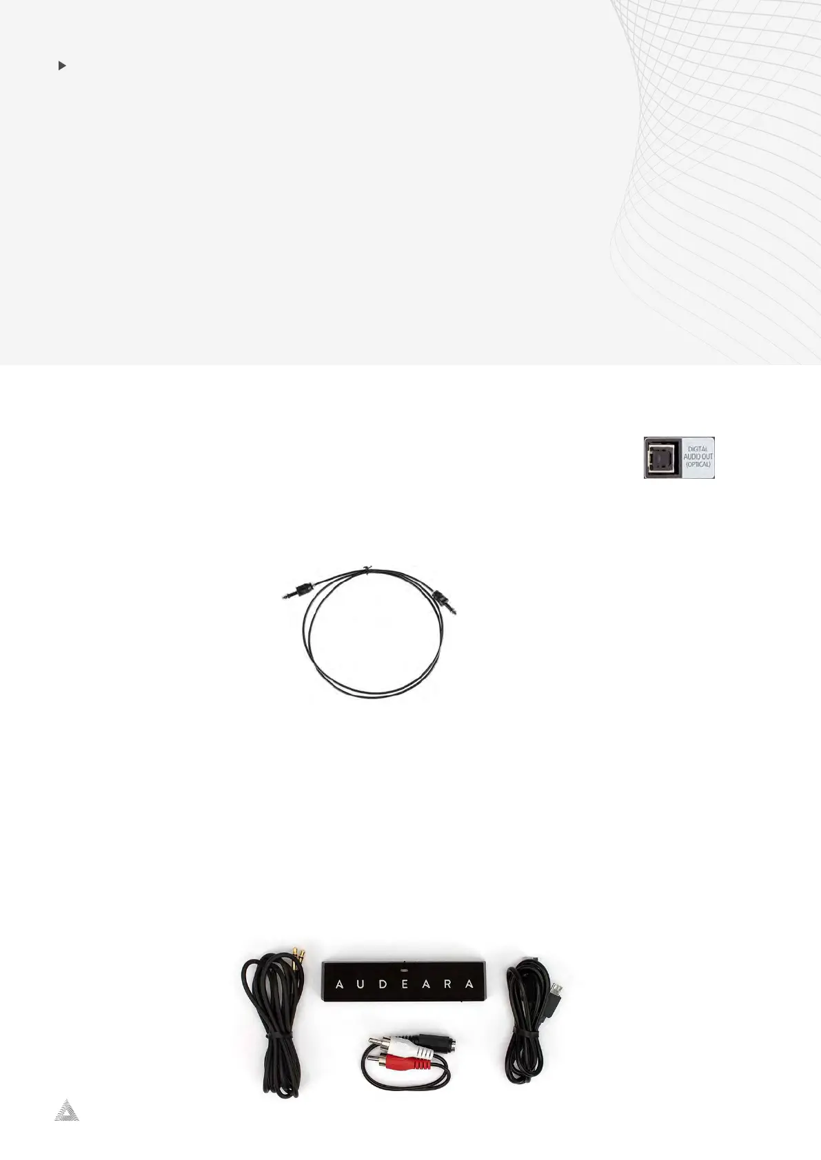 the Optical Cable (shown below) to plug one end in the “Digital Audio Out” port