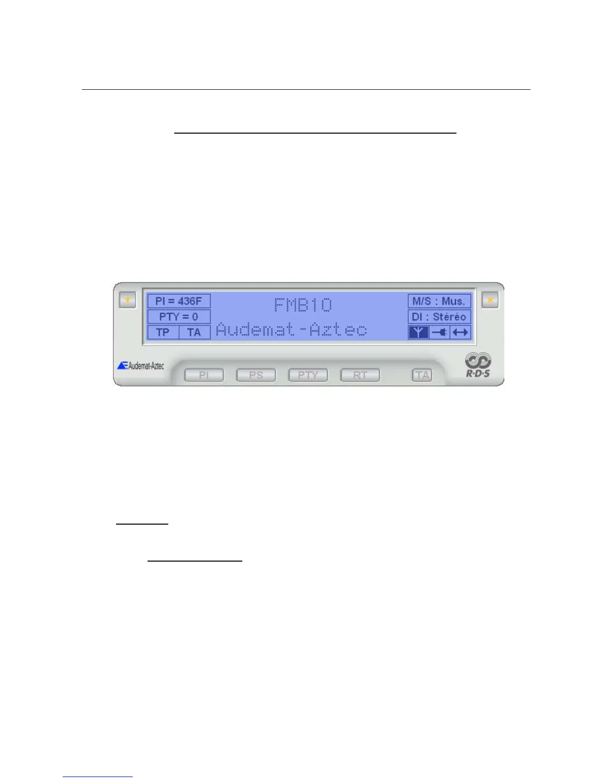 ¾ a display indicating the main parameters of the encoder generated RDS data.