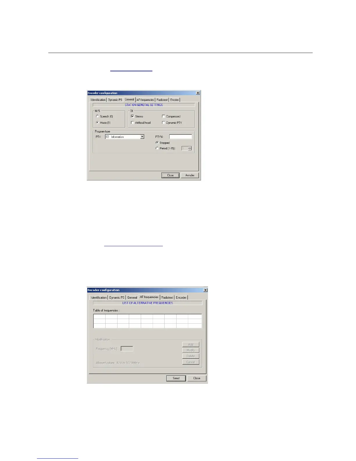This page displays already programmed alternative frequencies (AF) and enables them to be modified or