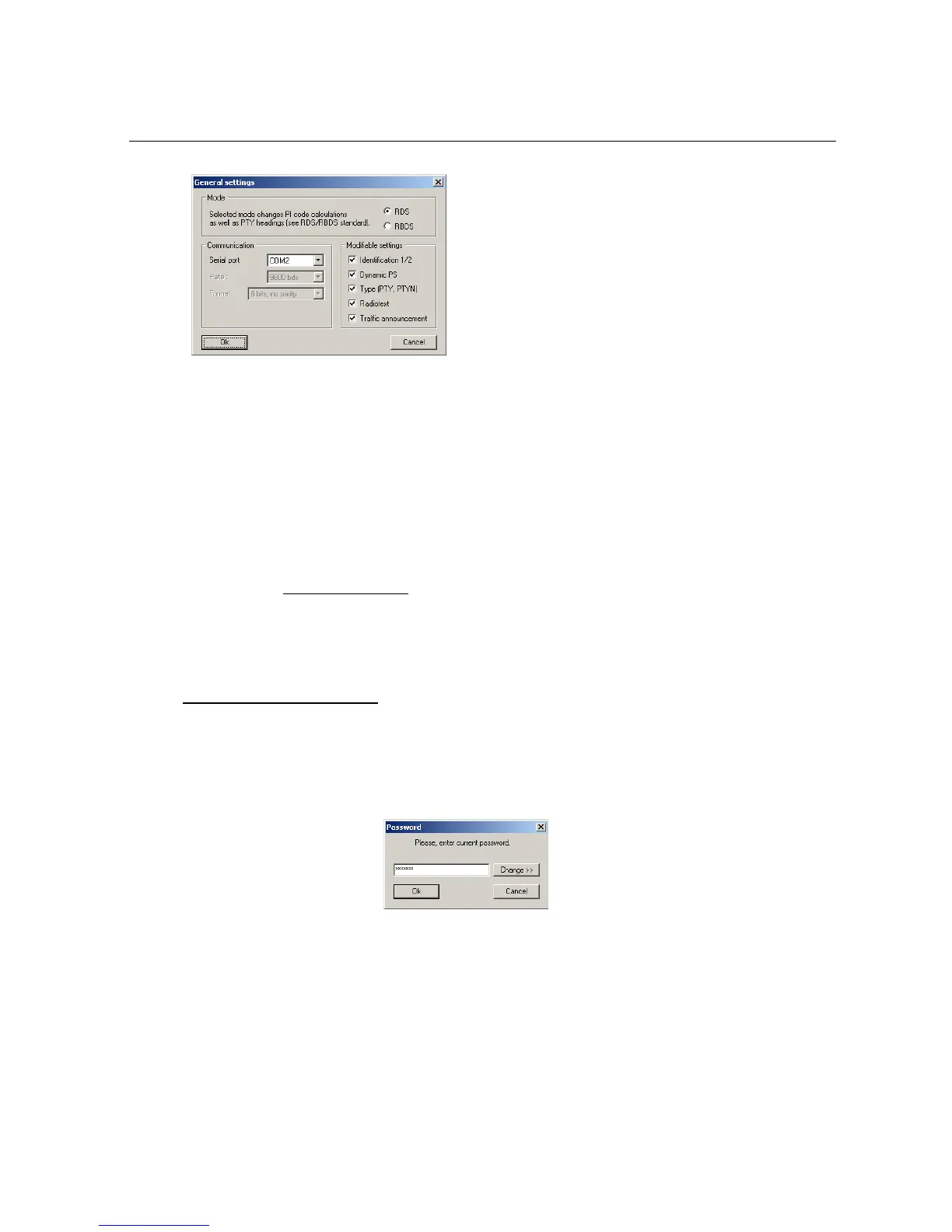 menu' button, a window will request the current password to be captured: