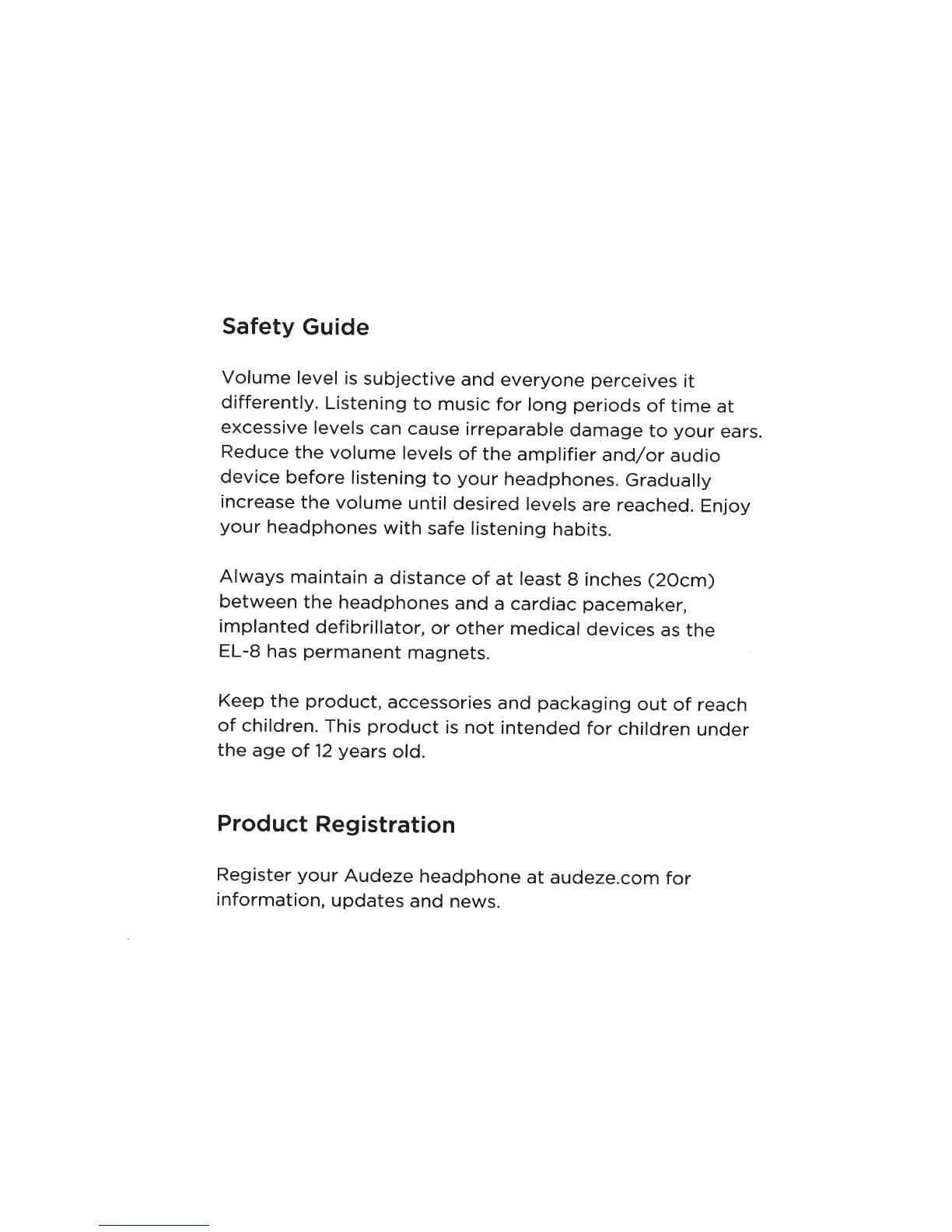Audeze EL-8 - Safety Guide; Product Registration