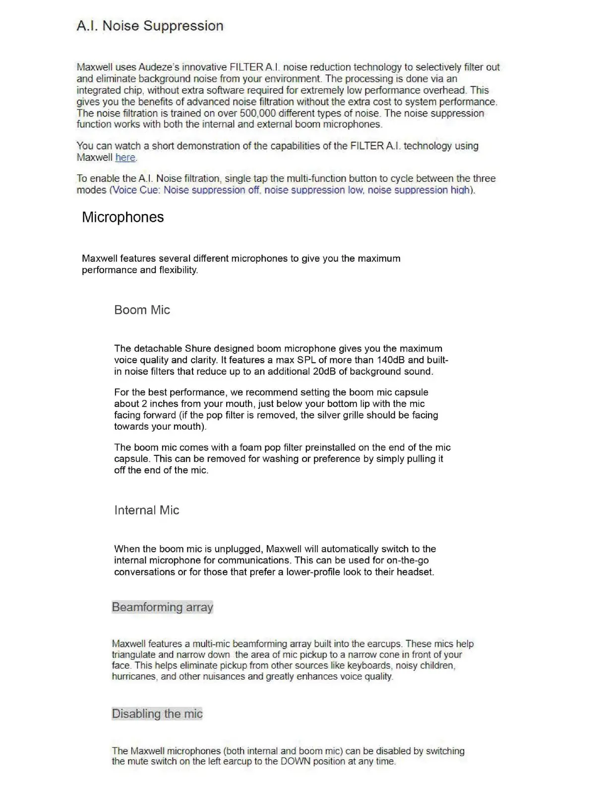 e Maxwell microphones (both internal and boom mic) can be disabled by