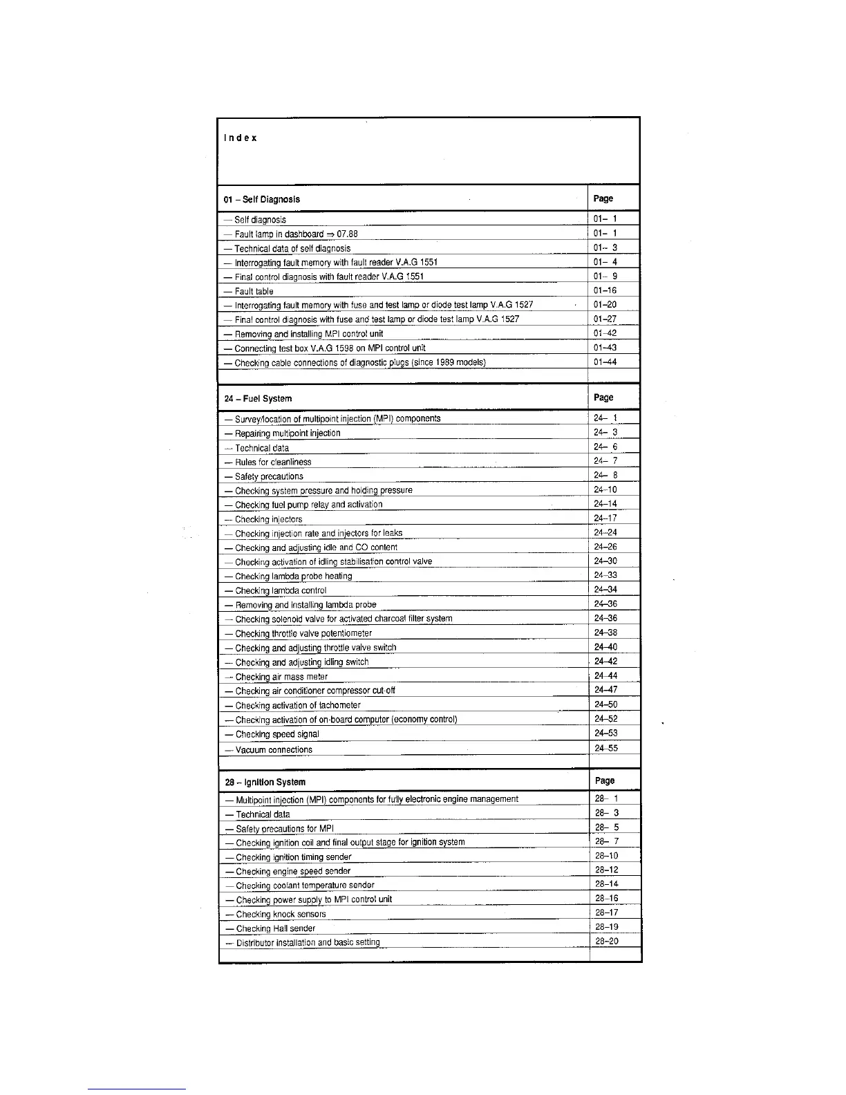 Audi 80 1987 - 01 Self Diagnosis; 24 Fuel System; 28 Ignition System