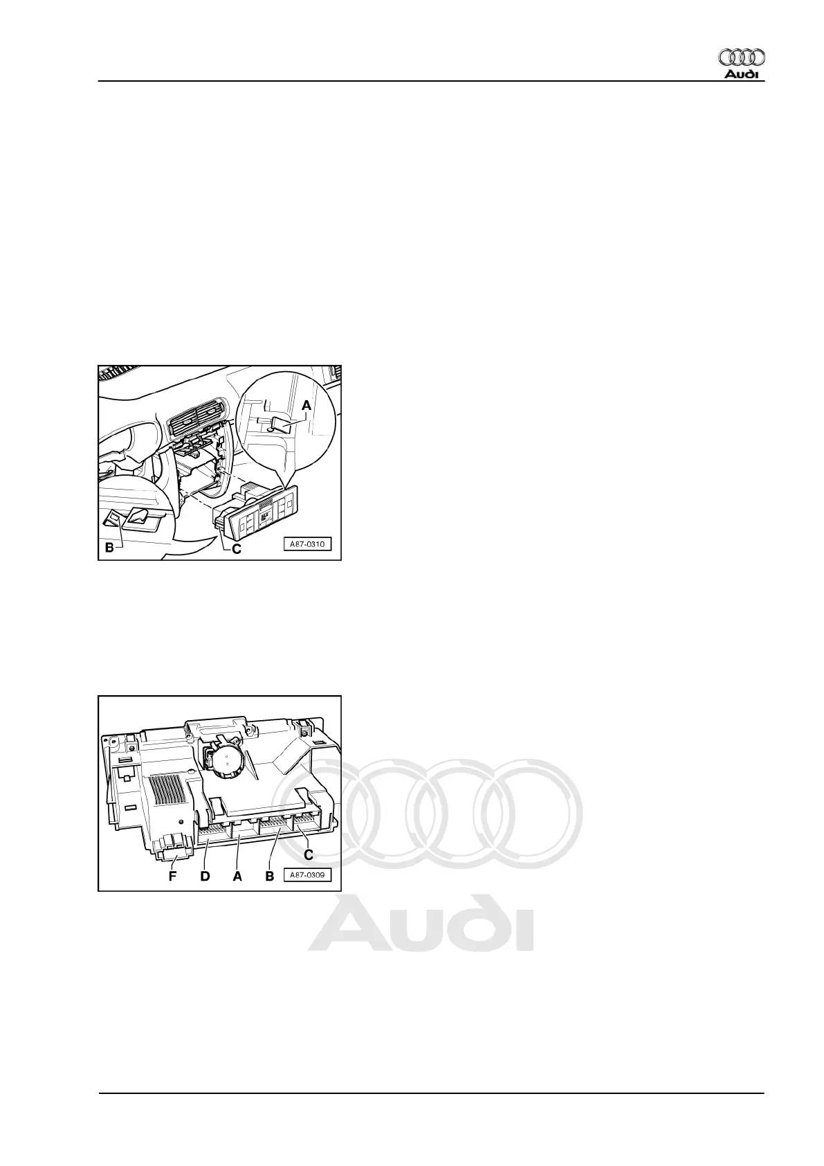 ◆ To remove the switches for the heated seats, press back the lugs -B- and pull the switch -C- back out of the