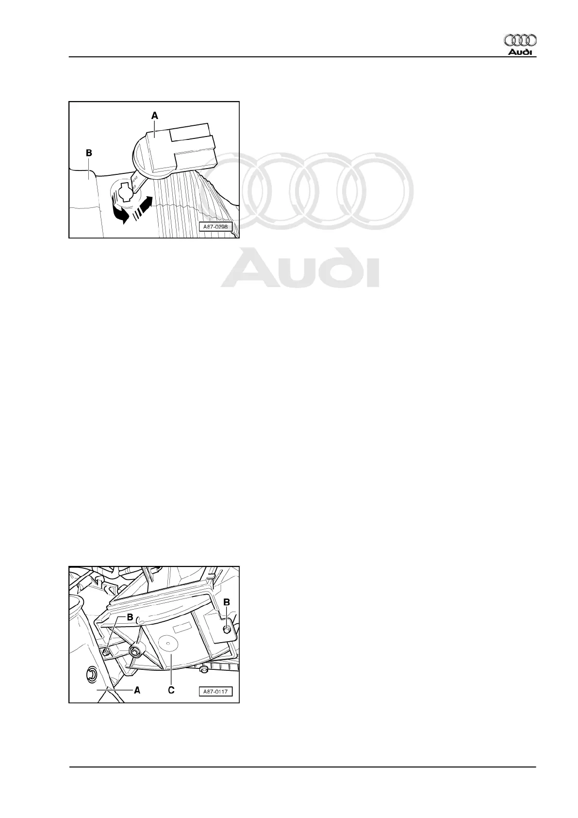 - Rotate sender -A- 90° and remove from air duct -B-.
