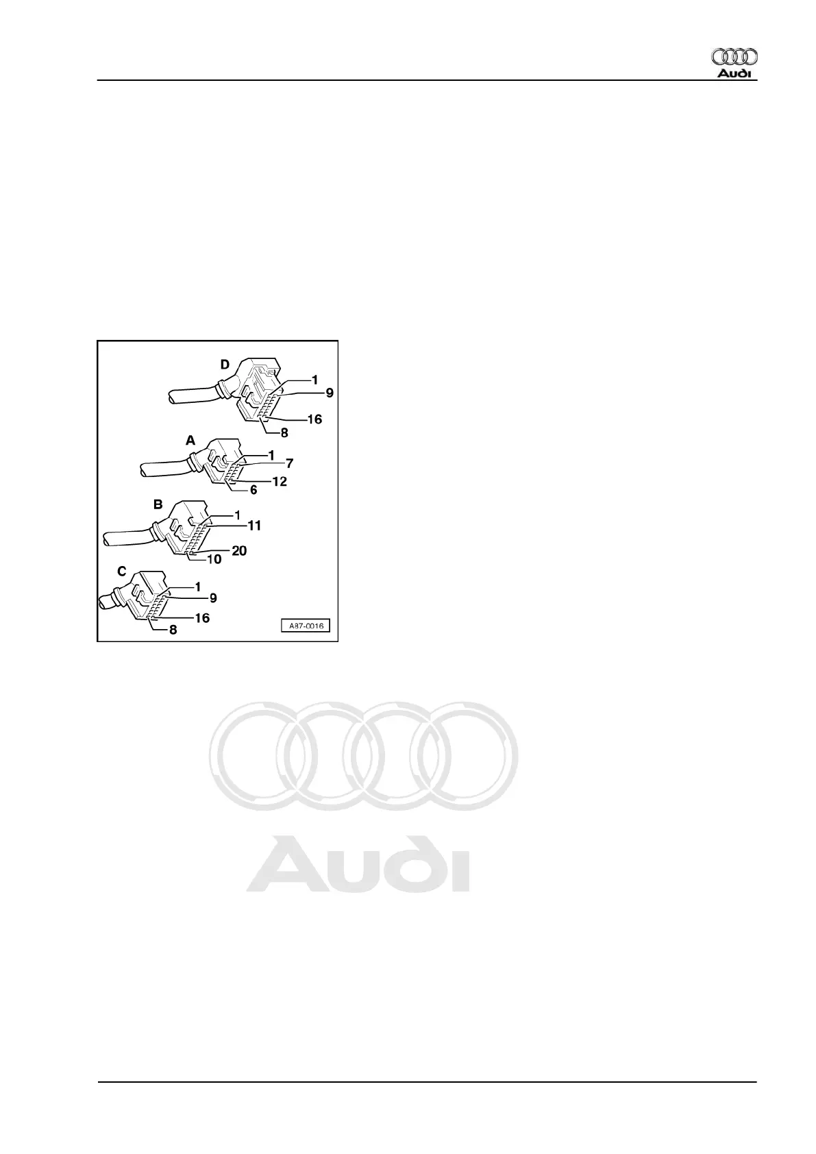 ◆ The pin assignment of connector D in adapter cable V.A.G 1598/12 is identical to those of the sockets on