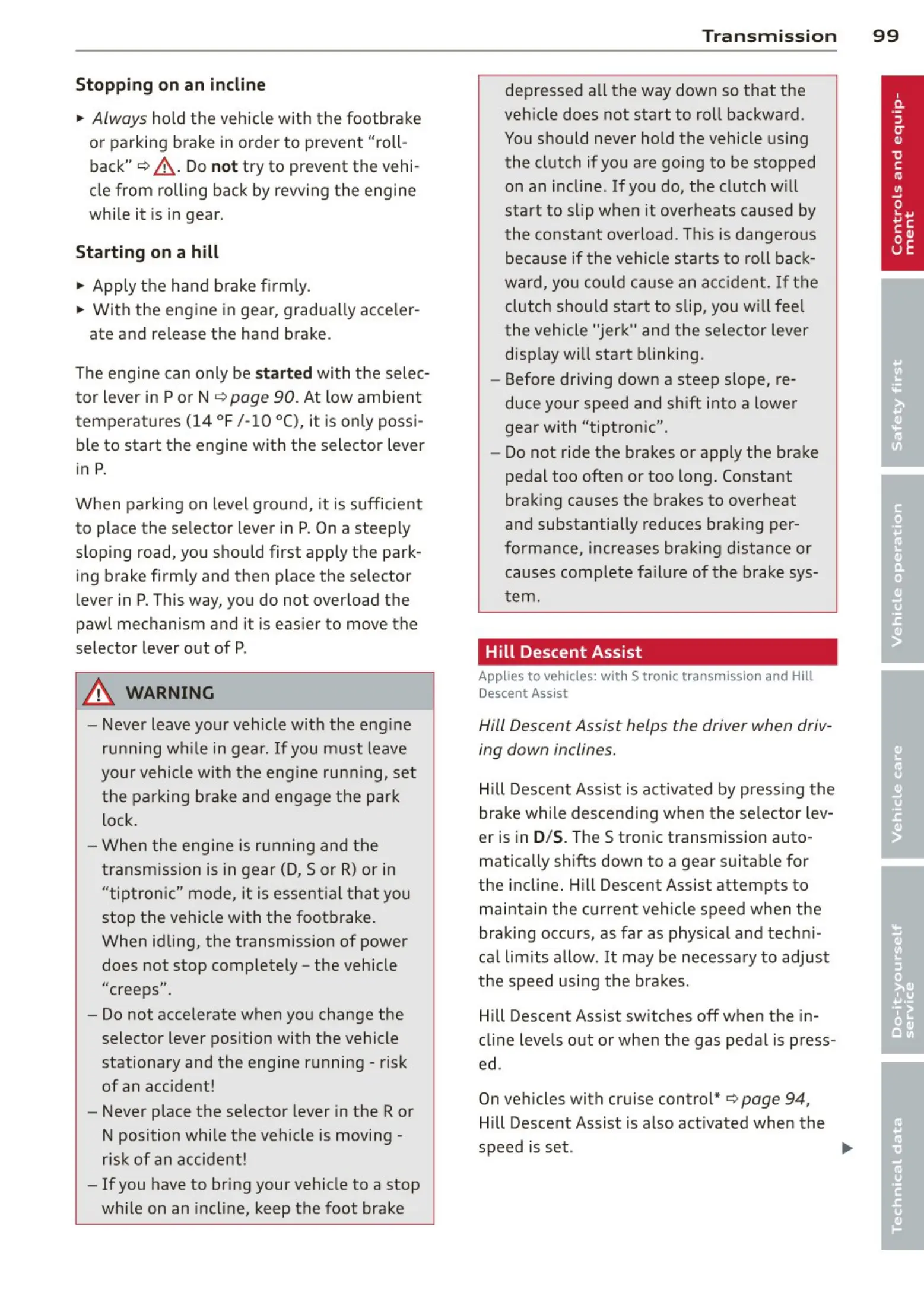 Applies to vehicles: with S tronic transmission and Hill