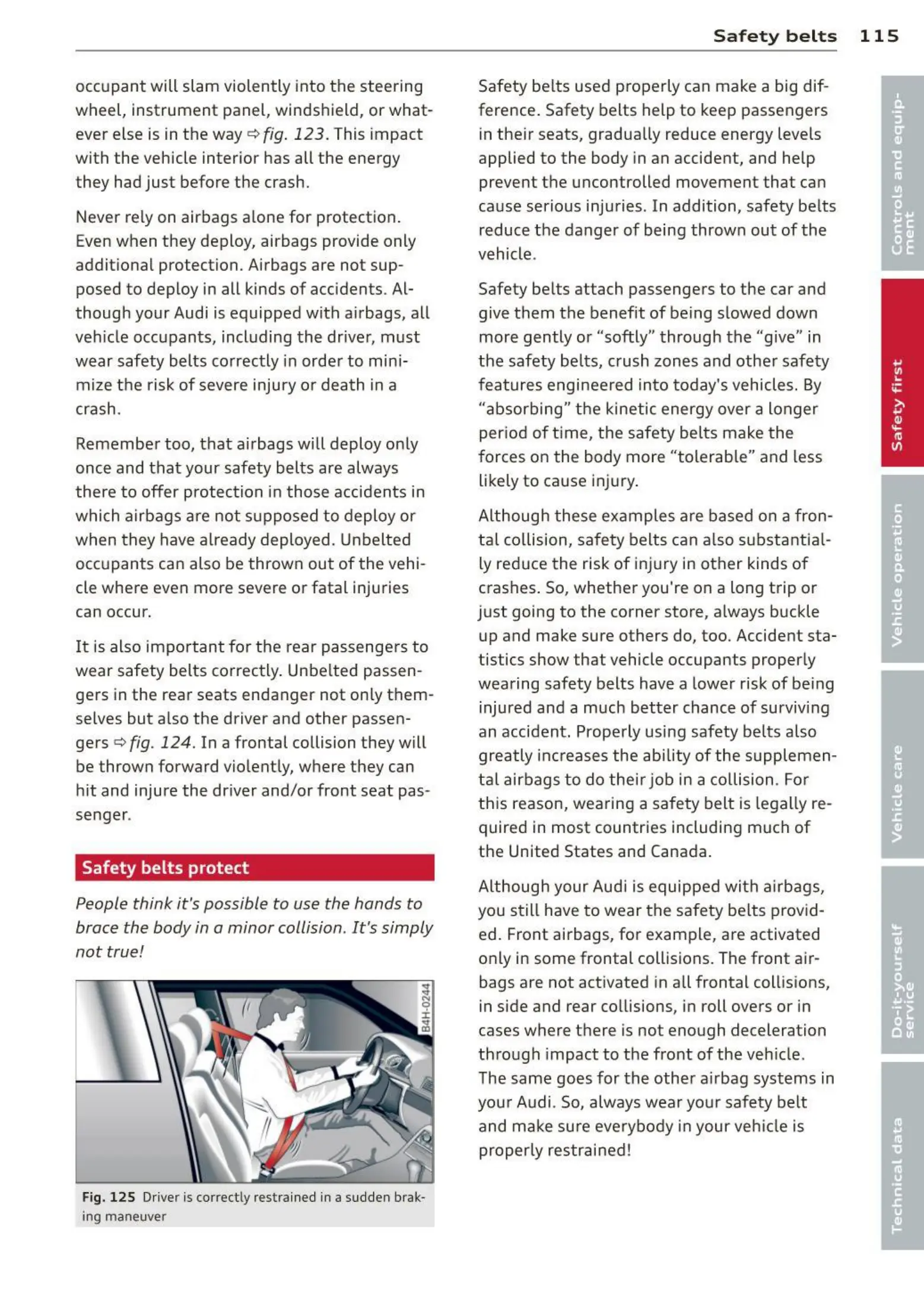 Fig. 125 Driver is correct ly restrained in a sudden brak-