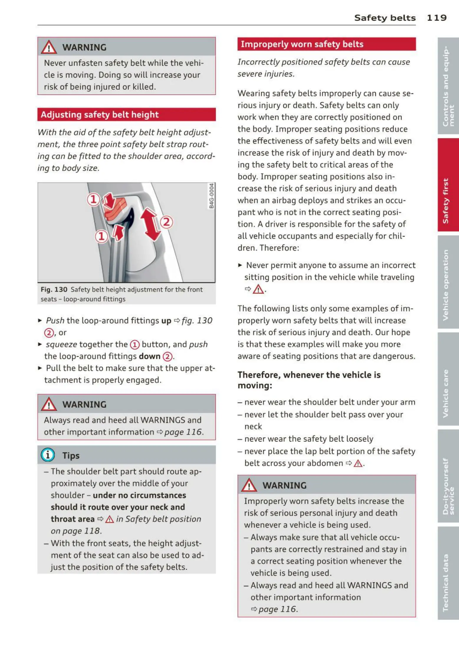 • Push the loop -aro und fitti ngs up ¢ fig. 130