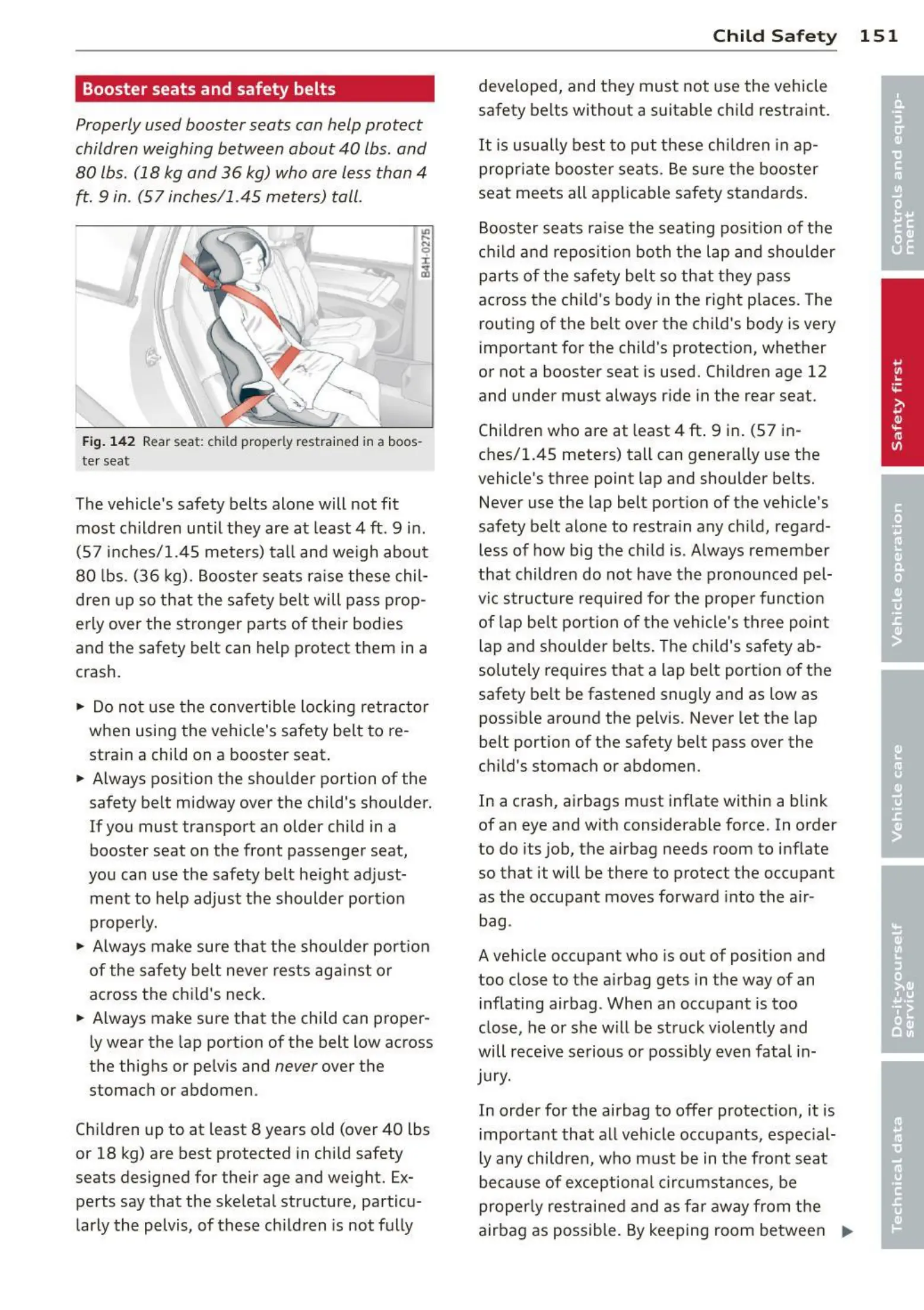 Fig. 142 Rear seat: child properly restrained in a boos-