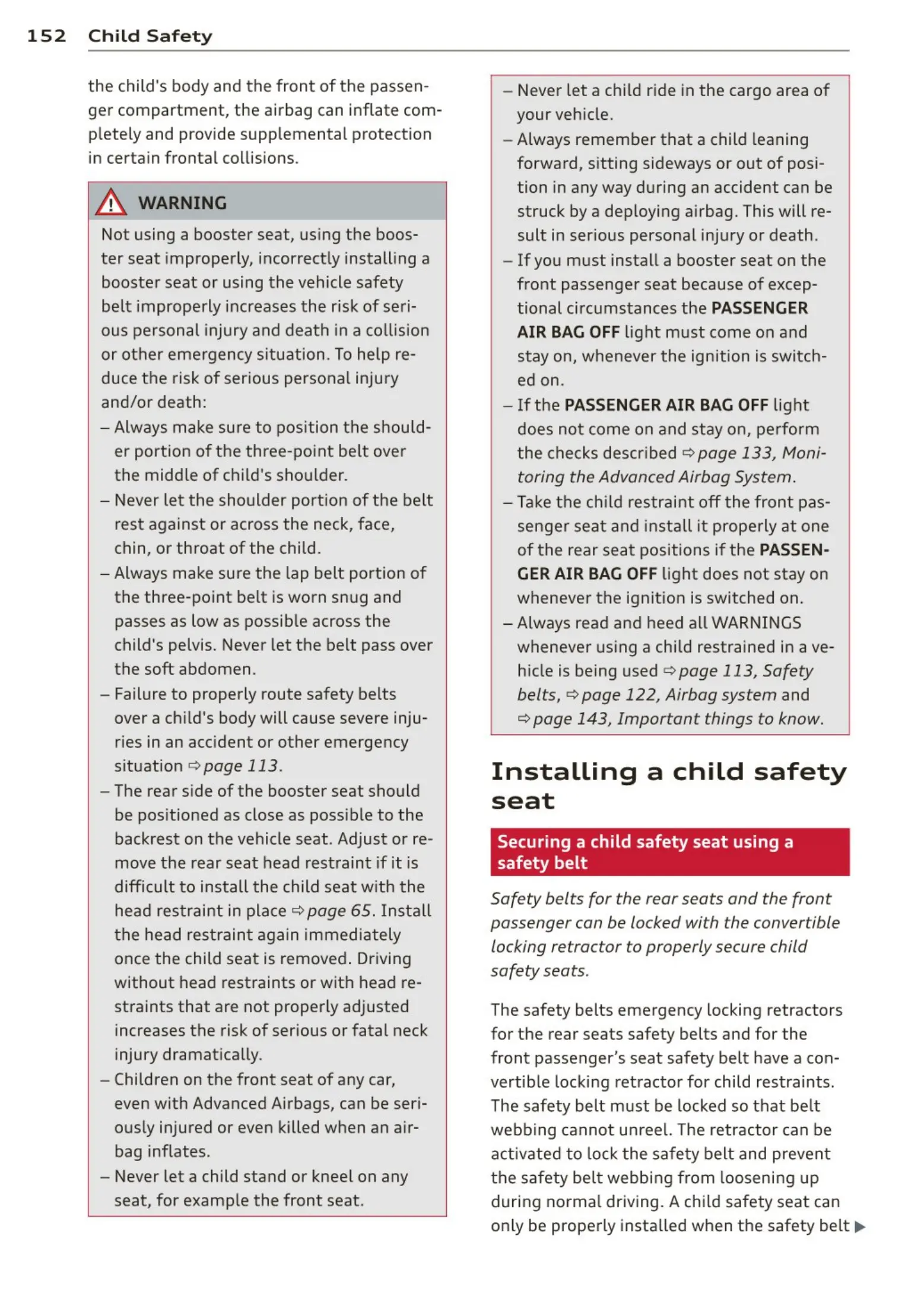 - If you must install a booster seat on the