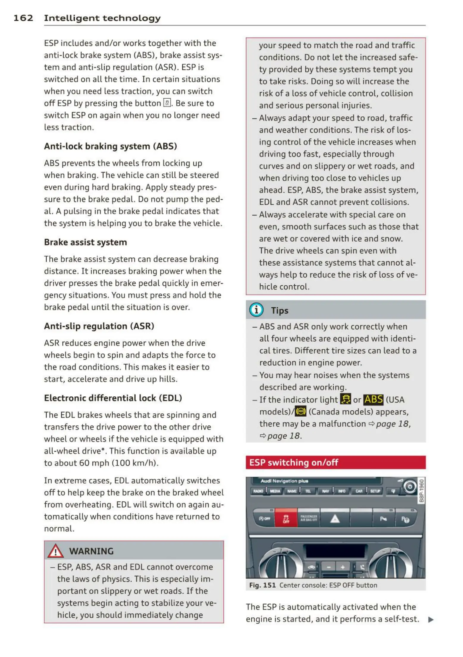 ahead. ESP, ABS, the brake assist system,