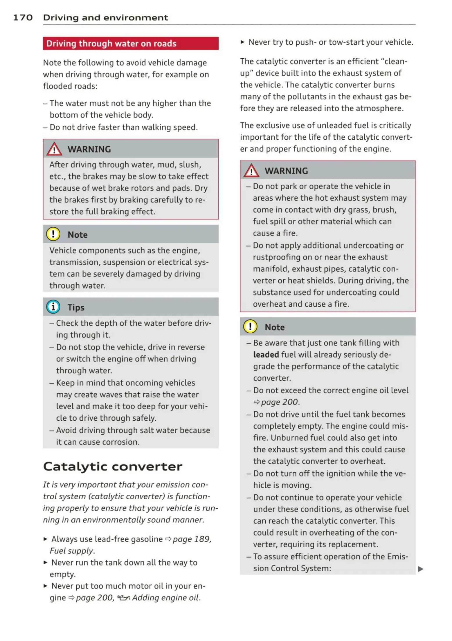 "' Always use lead-free gasoline ¢ page 189,