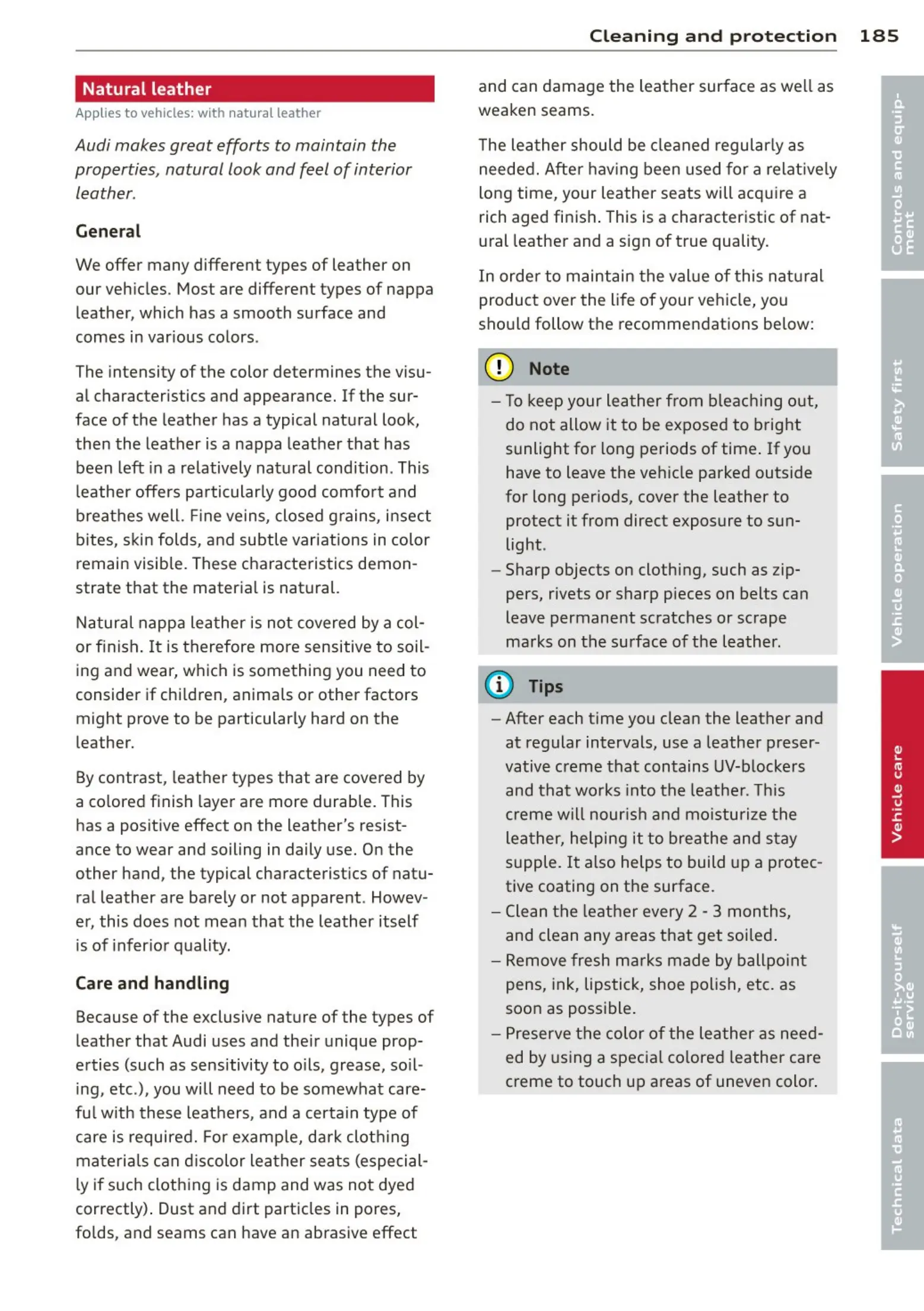 Cleaning a nd protec t ion 185