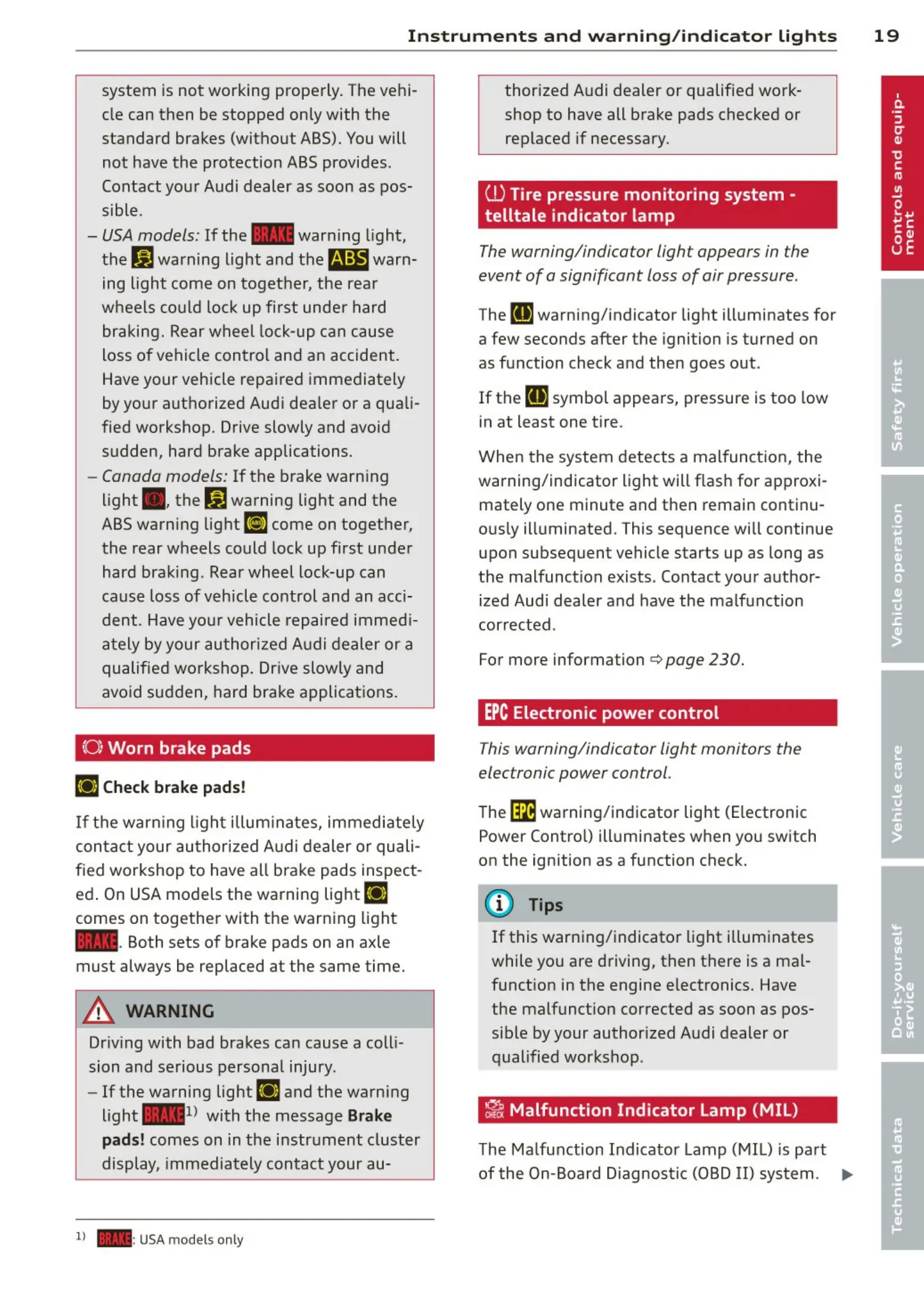 ed. On USA models the warning light