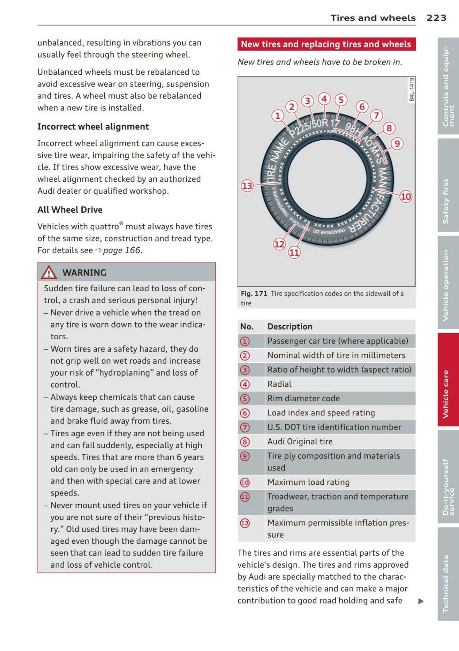 Vehicles wit h quattro ® must always have t ires