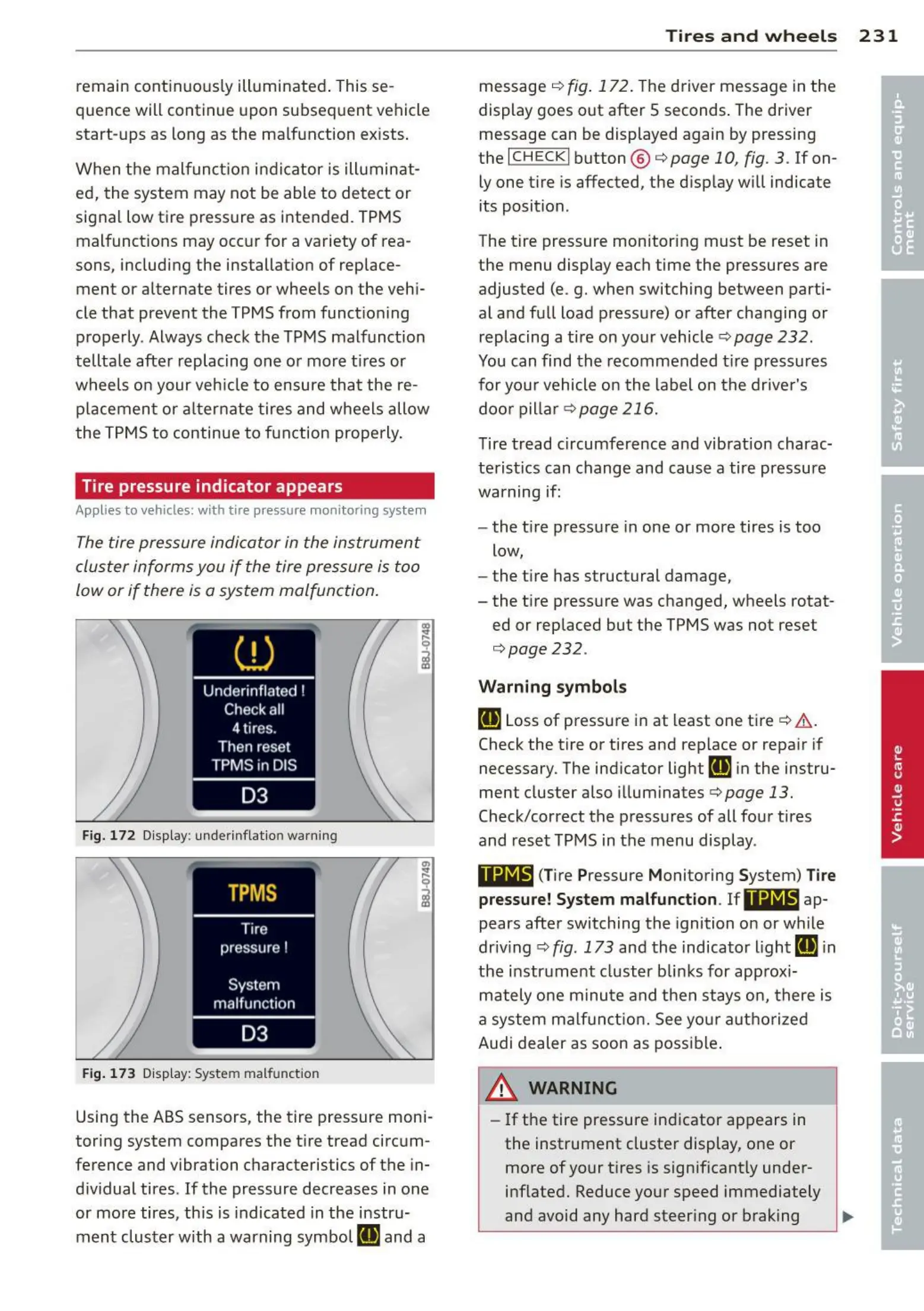 Fig. 172 Display: underinflation warning
