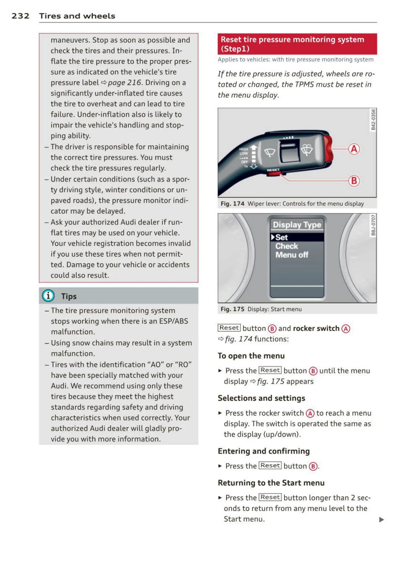 Fig. 174 Wiper lever: Contro ls for the menu display