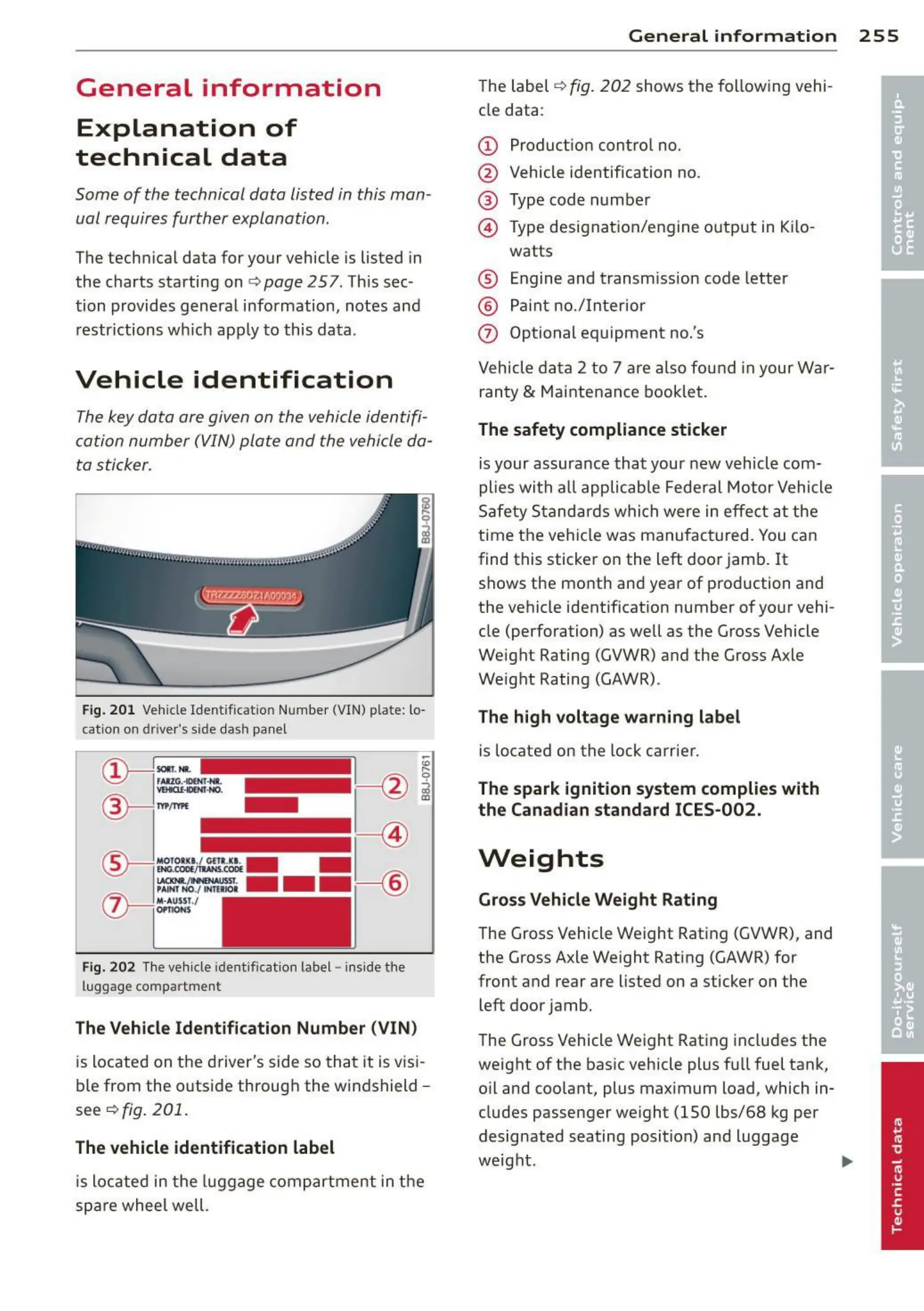 The technical data for your vehicle is listed in