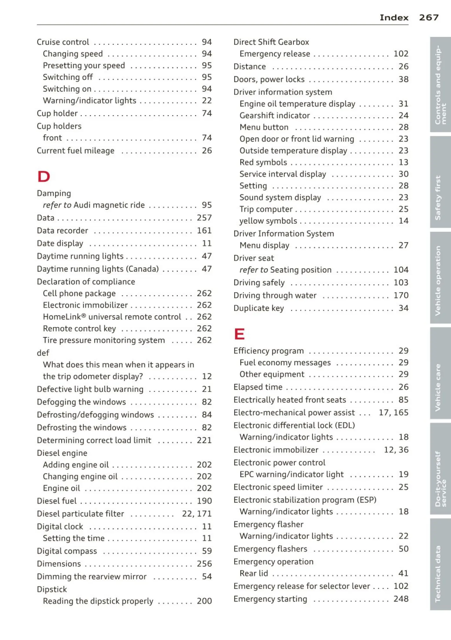 refer to Audi magnetic ride . . . . . . . . . . . 95