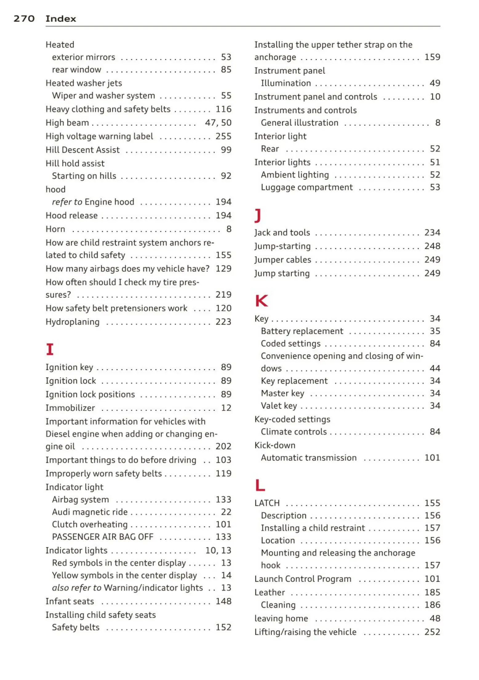 Jumper cables . . . . . . . . . . .. . . . . . . . . . . 249