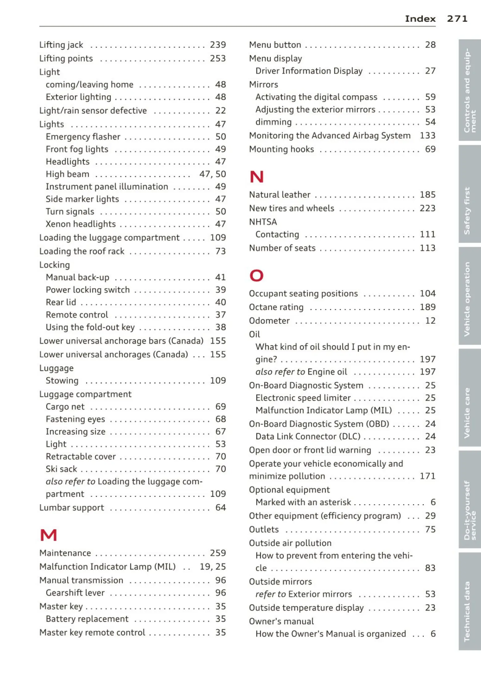 Loading the luggage compartment . . . . . 109