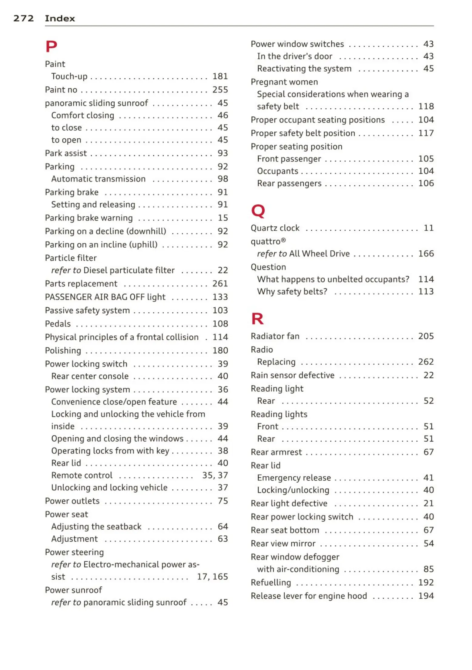Rear passengers . . . . . . .......... . . . 106