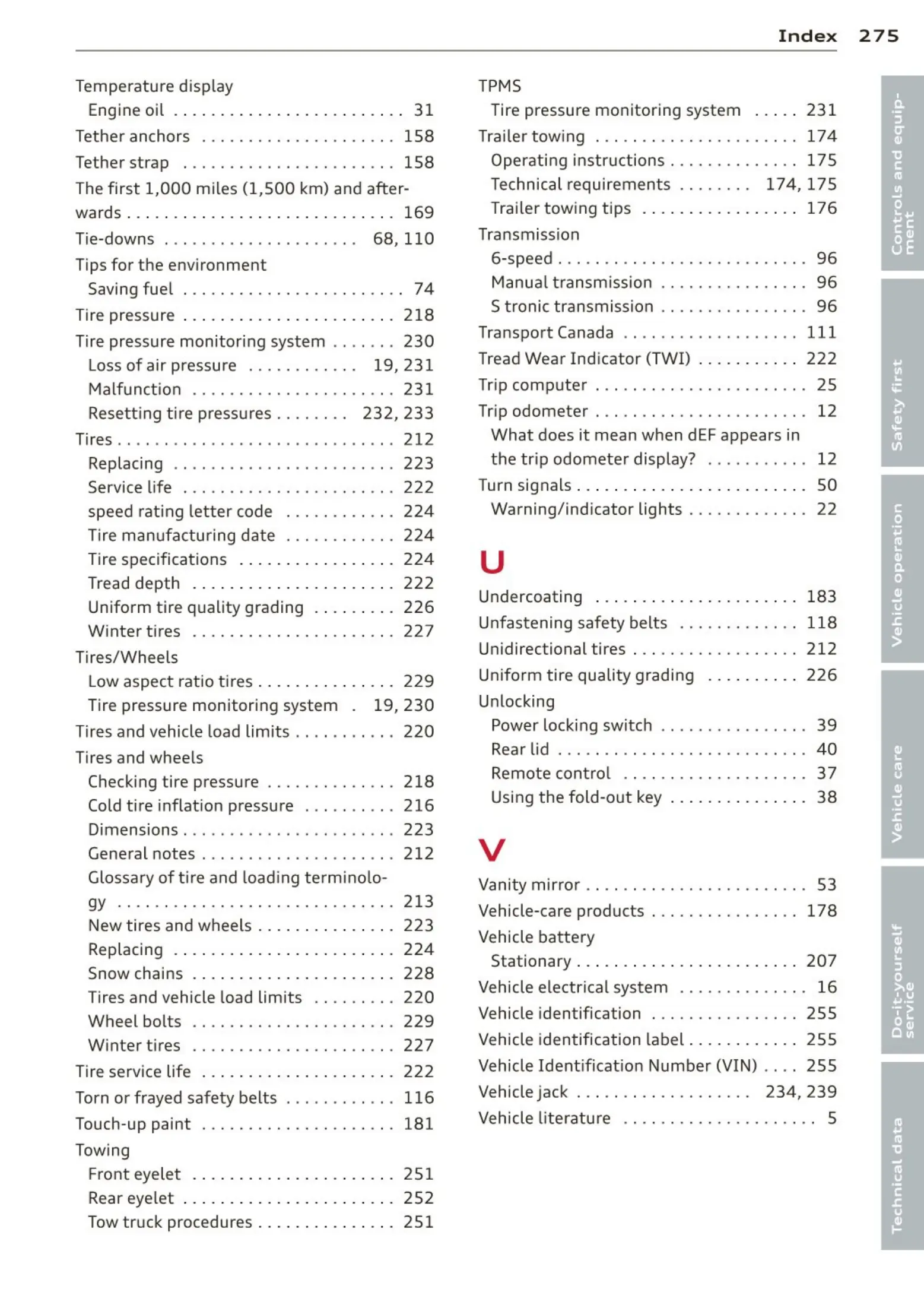 Tires and vehicle load limits . . . . . . . . . . . 220