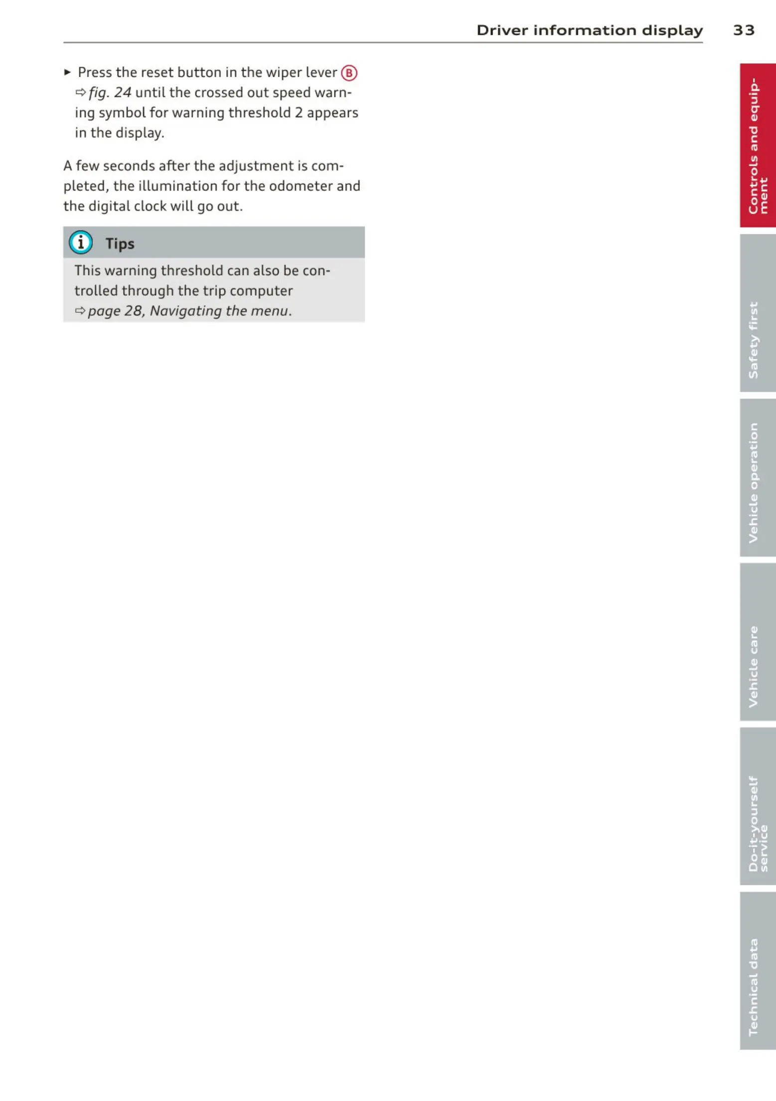 ¢ fig. 24 until the crossed out speed warn-