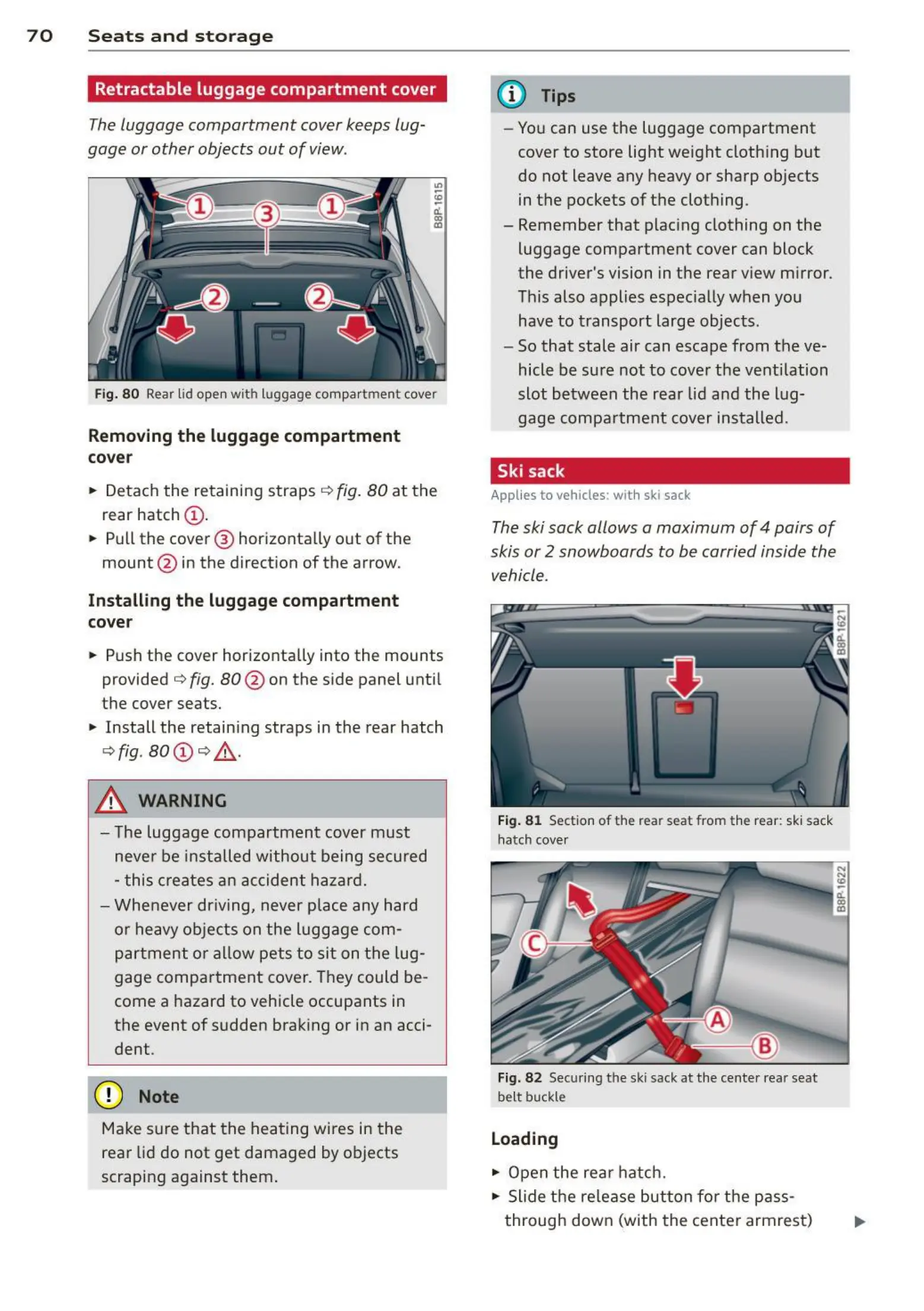 Fig. 82 Securing the ski sack at the cente r rear seat