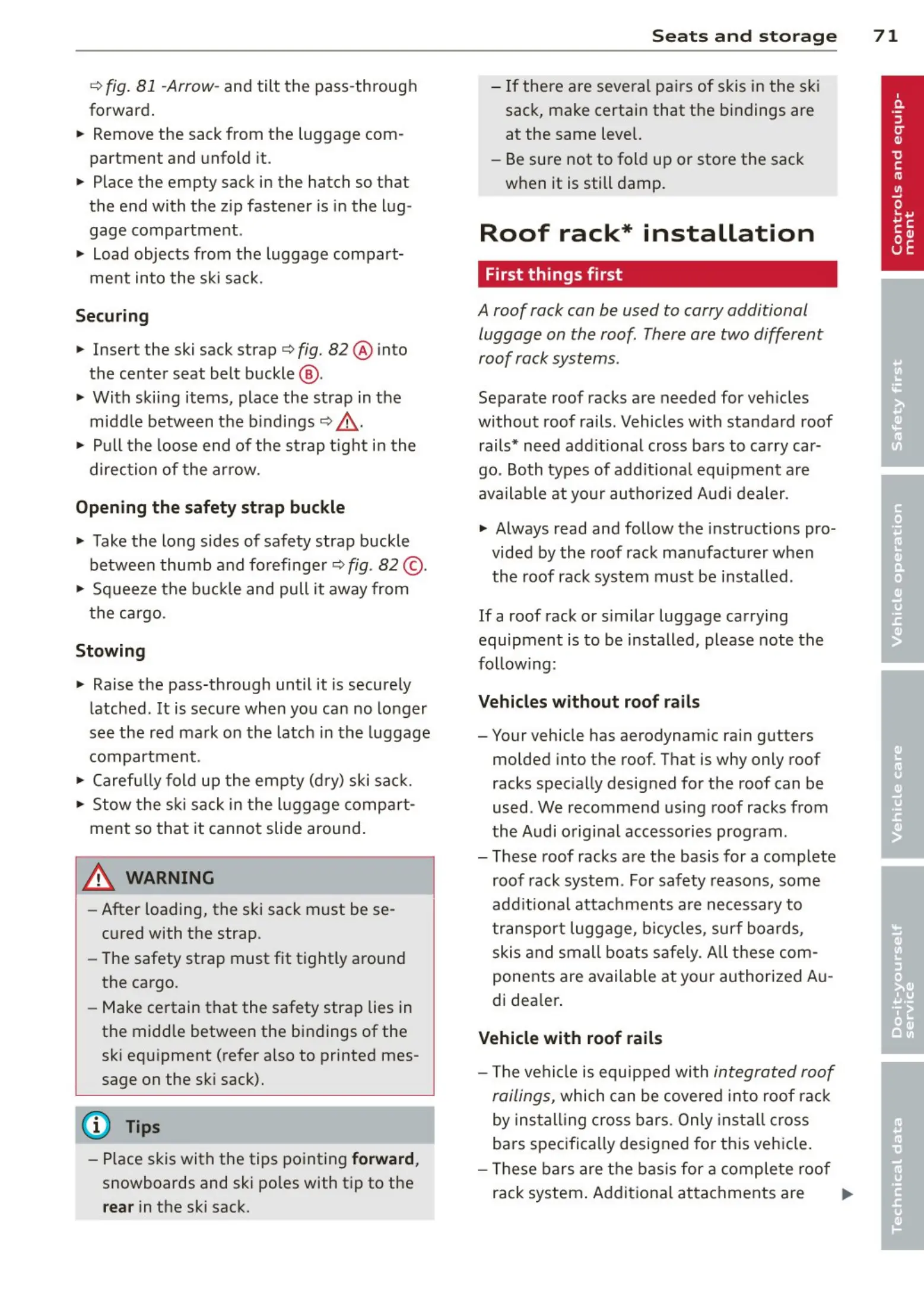 Insert the ski sack strap ¢ fig. 82 @ into