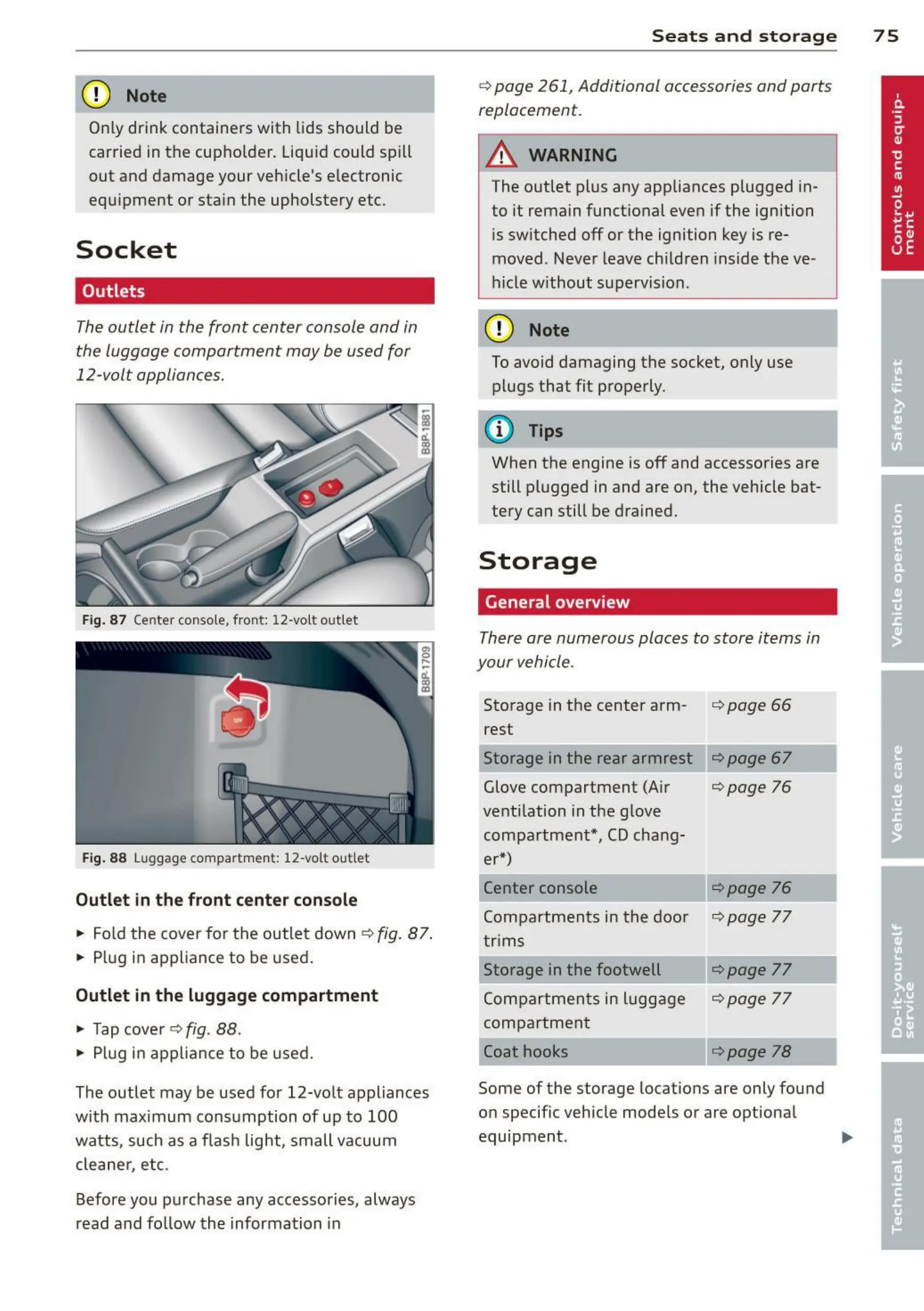 Fig. 88 Luggage compartmen t: 12-volt outlet