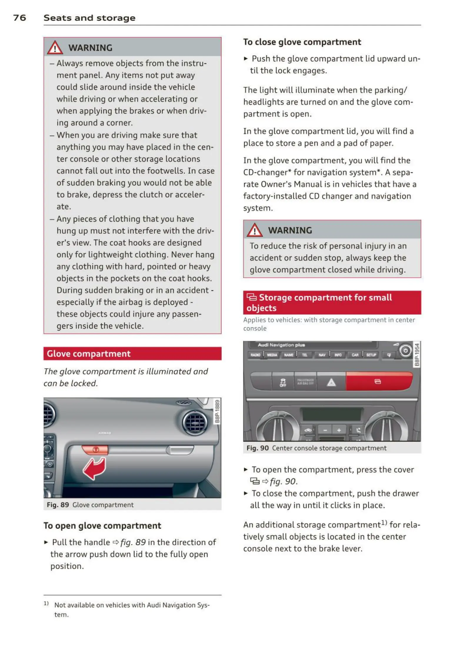 1) Not available on vehicles with Audi Navigat ion Sys-