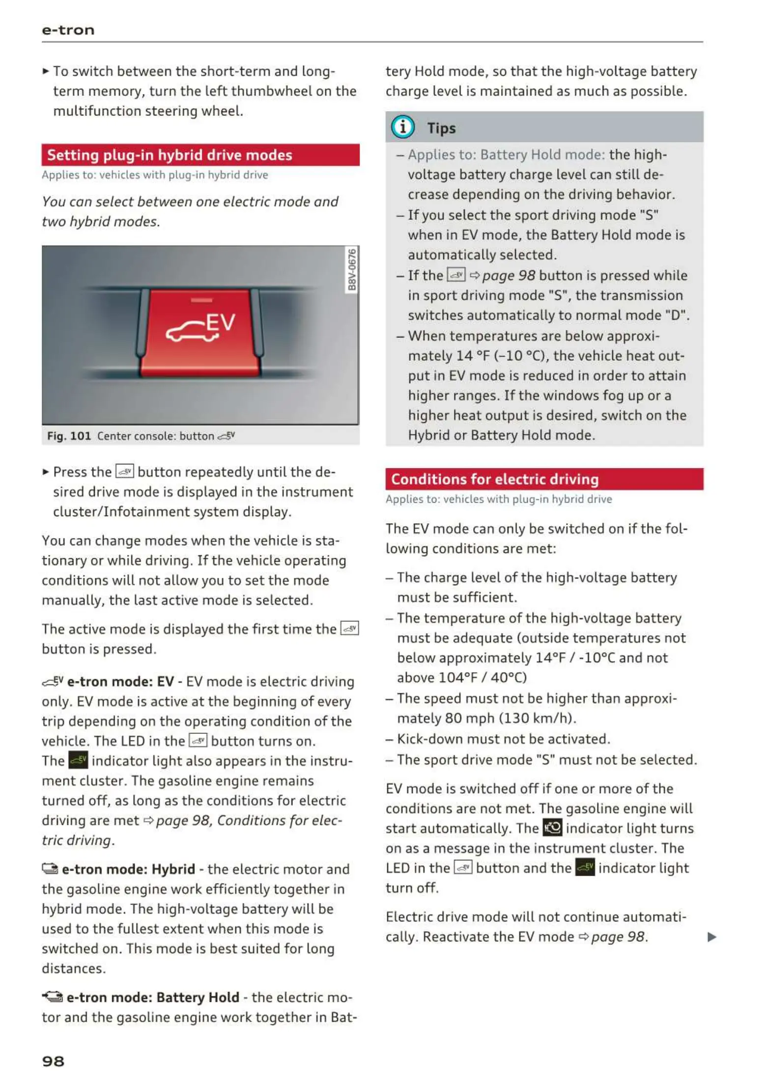 ,cf,V e-t ron mode: EV - EV mode is electric driving
