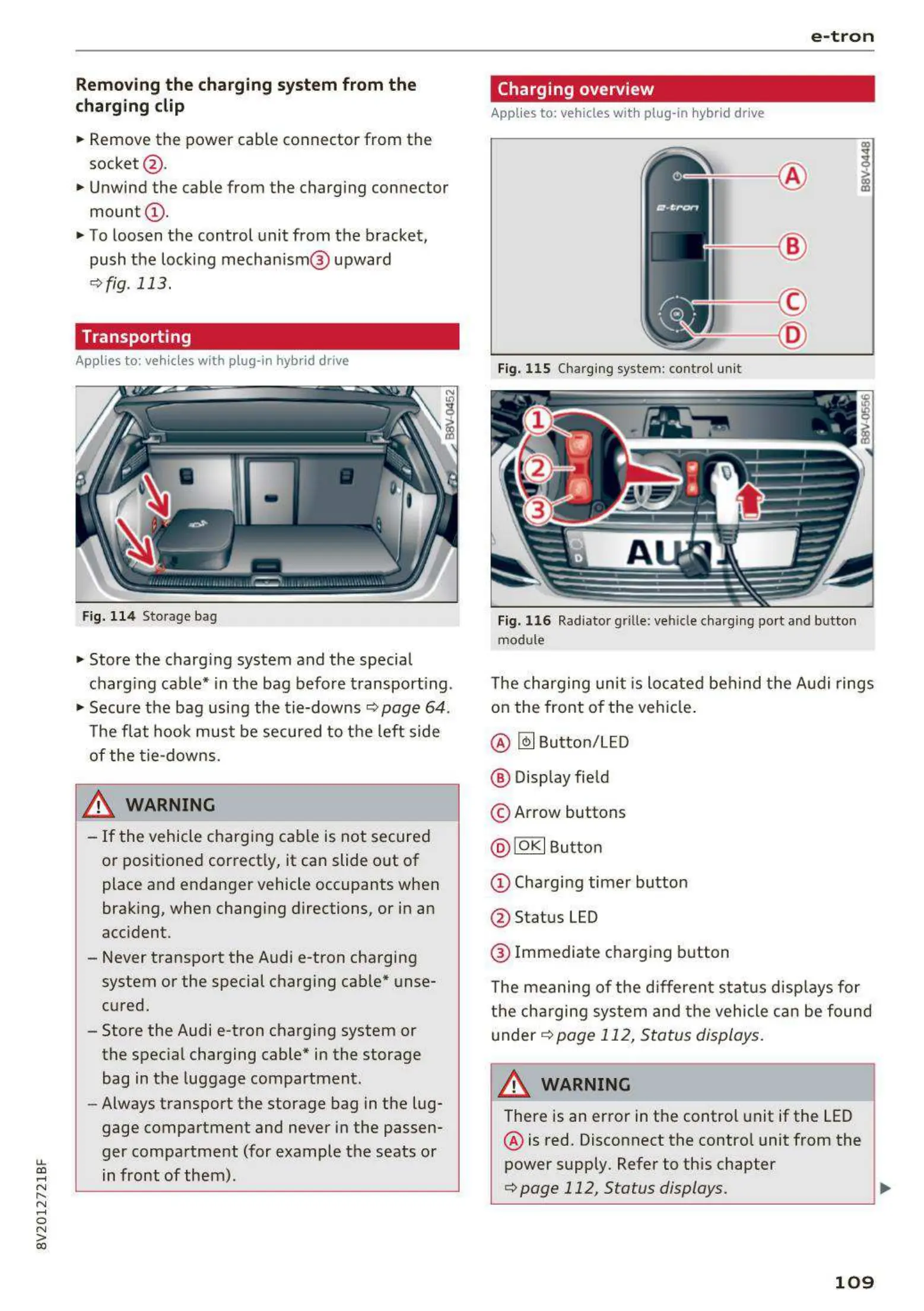 Fig. 116 Radiator grille: veh icle charg ing port an d butto n