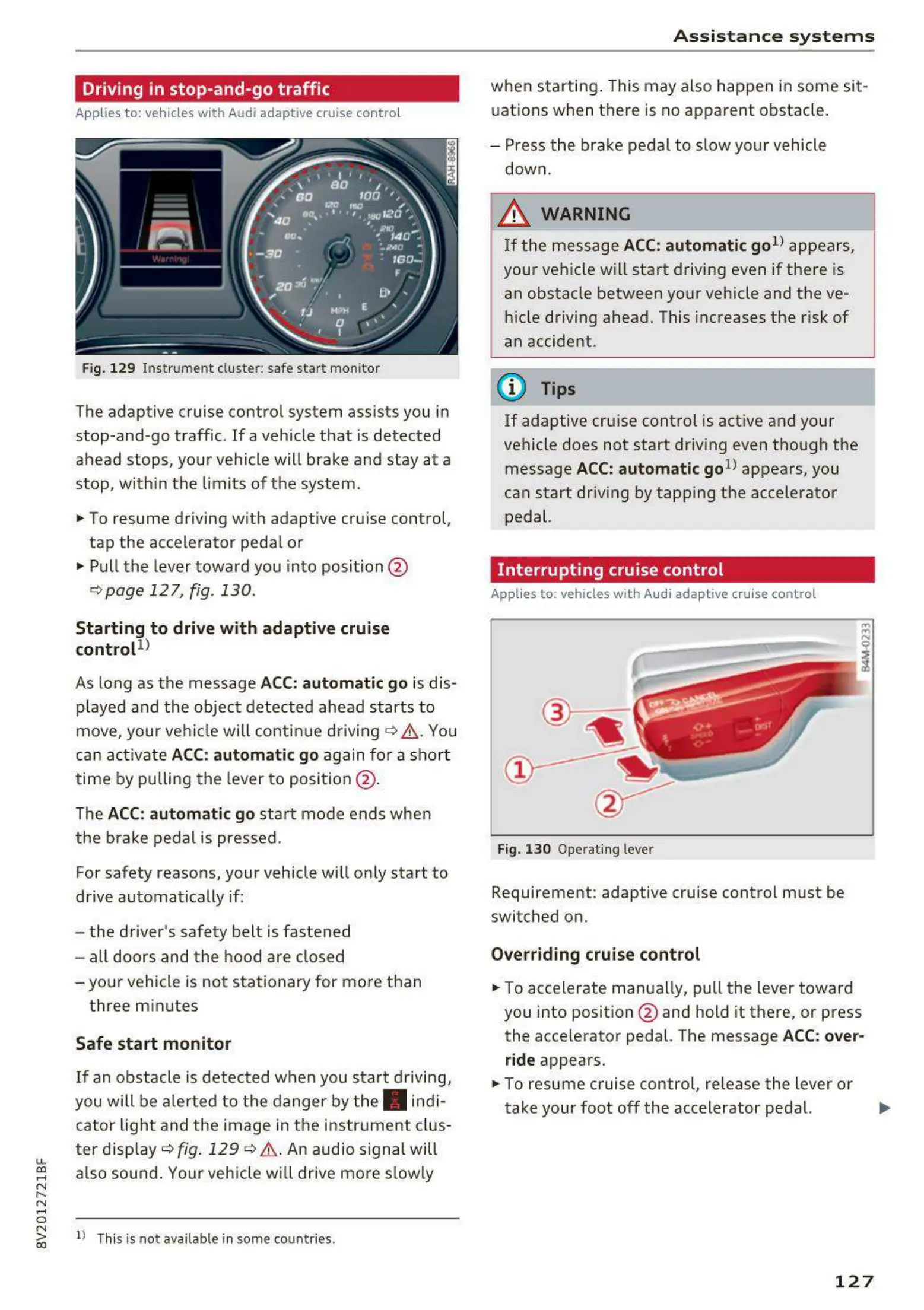Applies to : vehicles wit h Audi ada ptive cruise control