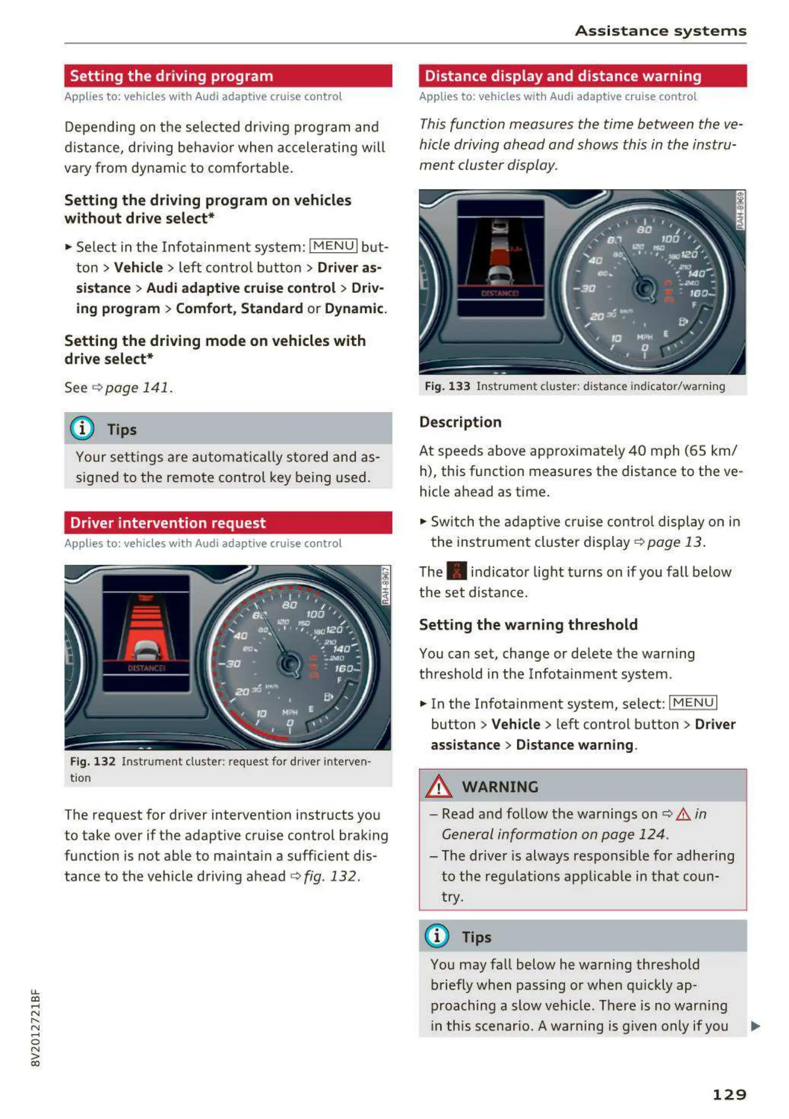 Fig. 132 Ins t rument clust er: reques t for driver int erven-