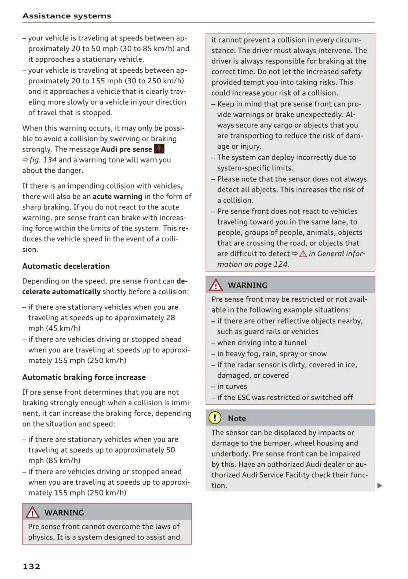 warn ing, pre sense front can brake with increas-