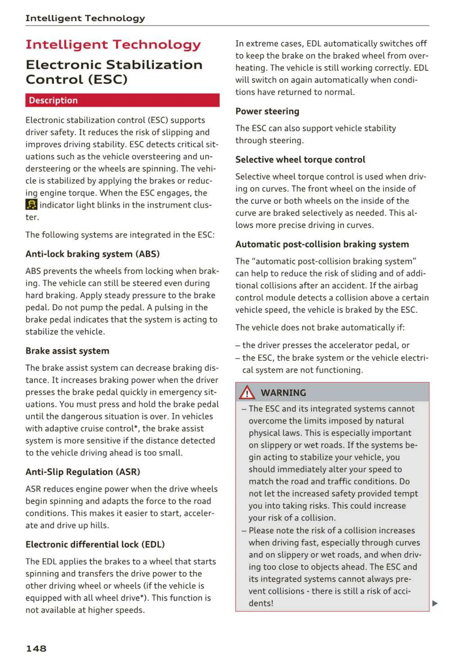 - the ESC, the bra ke system or the ve hicle elect ri-