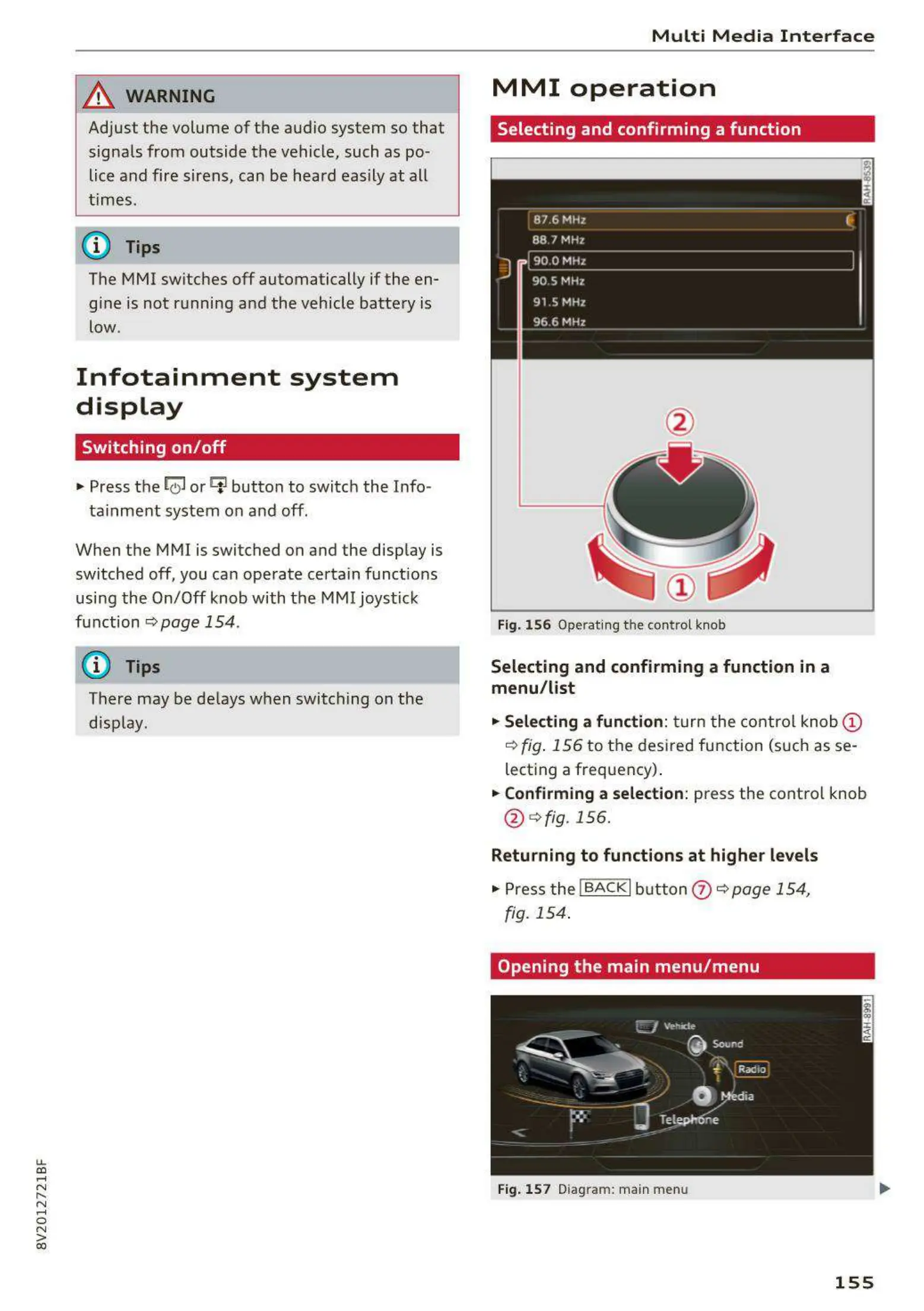 When the MMI is switched on and the display is