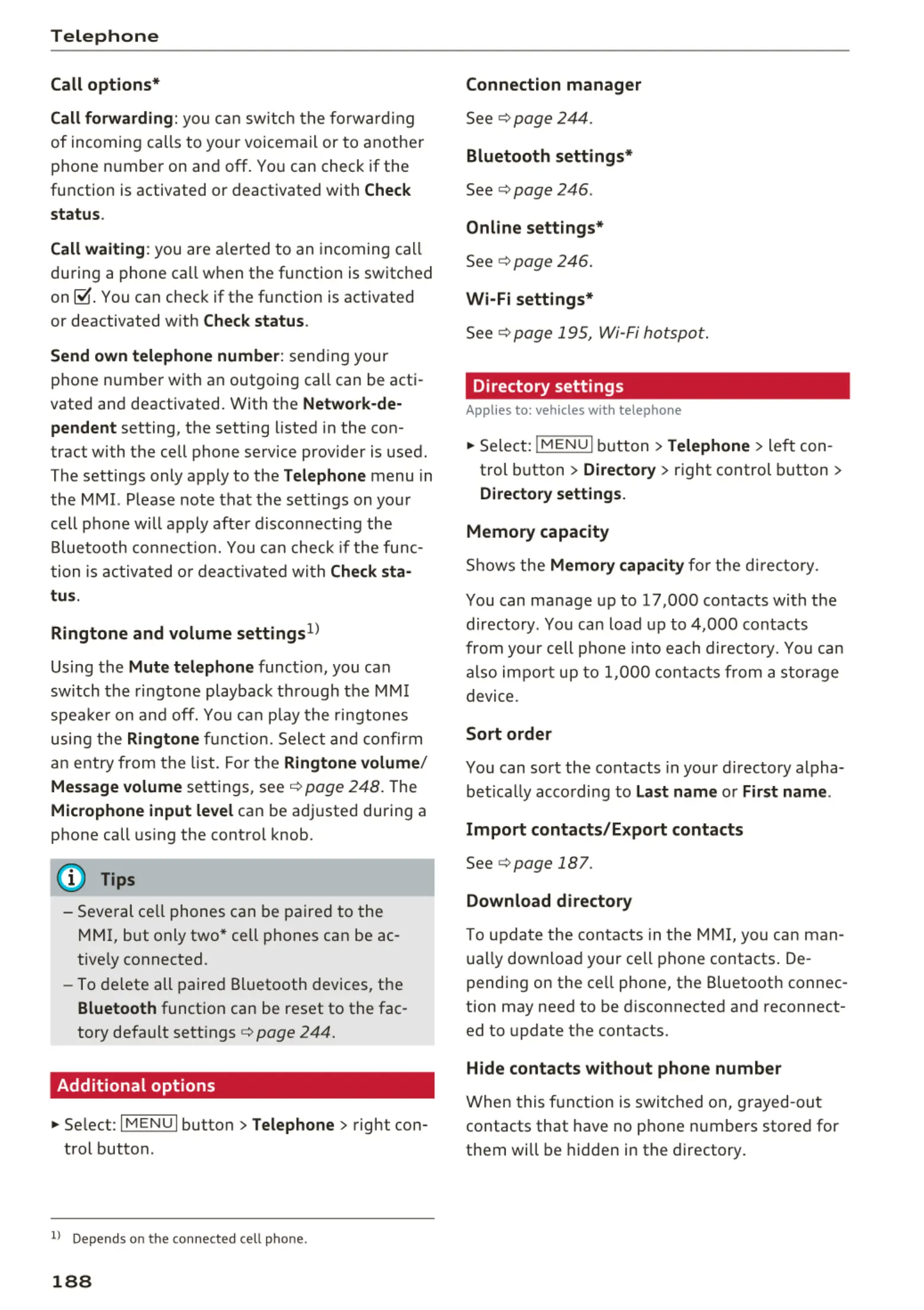 MMI, but only two* cell phones can be ac-