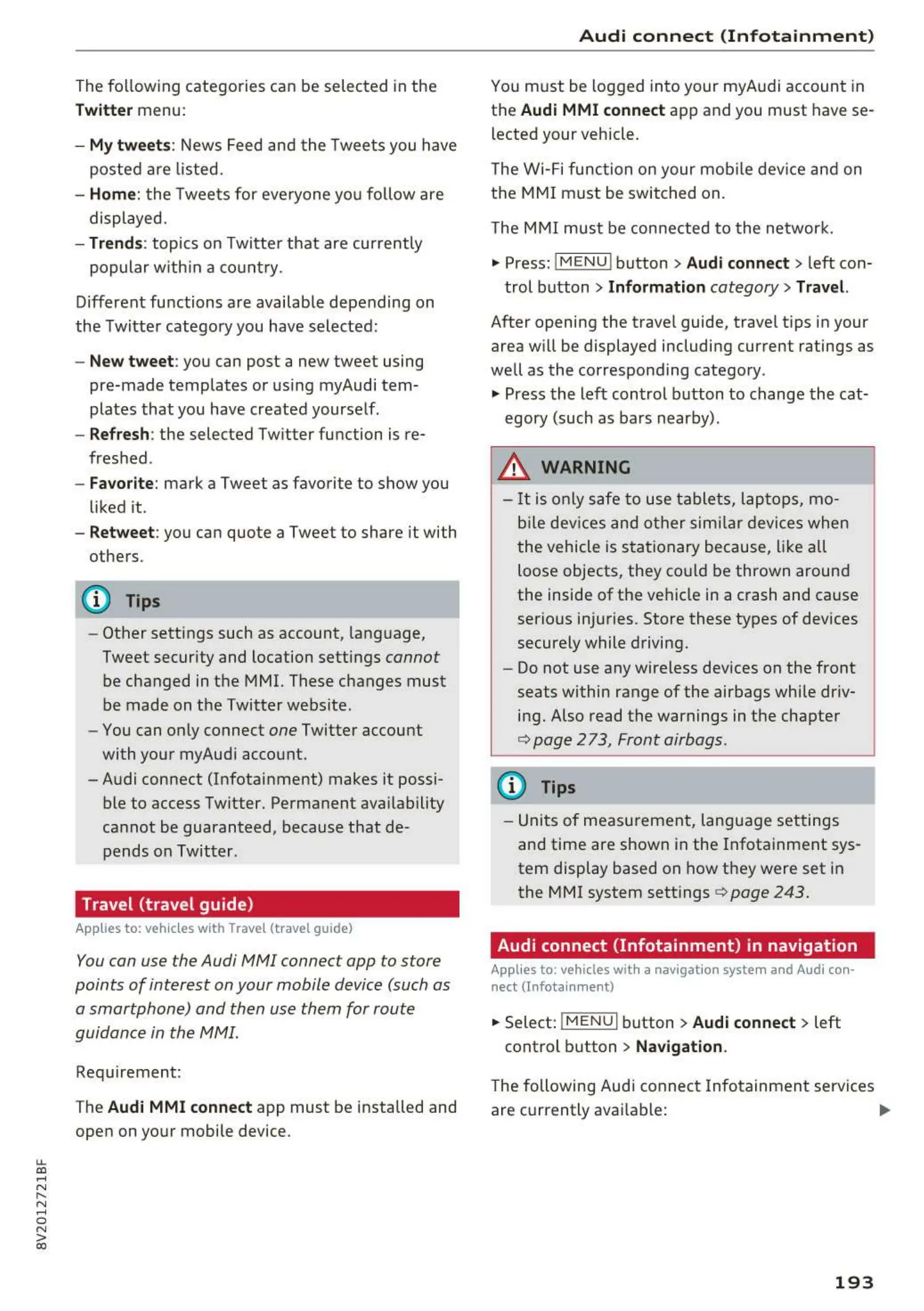 Appli es to : vehicles wit h a navigat ion system and Audi con-