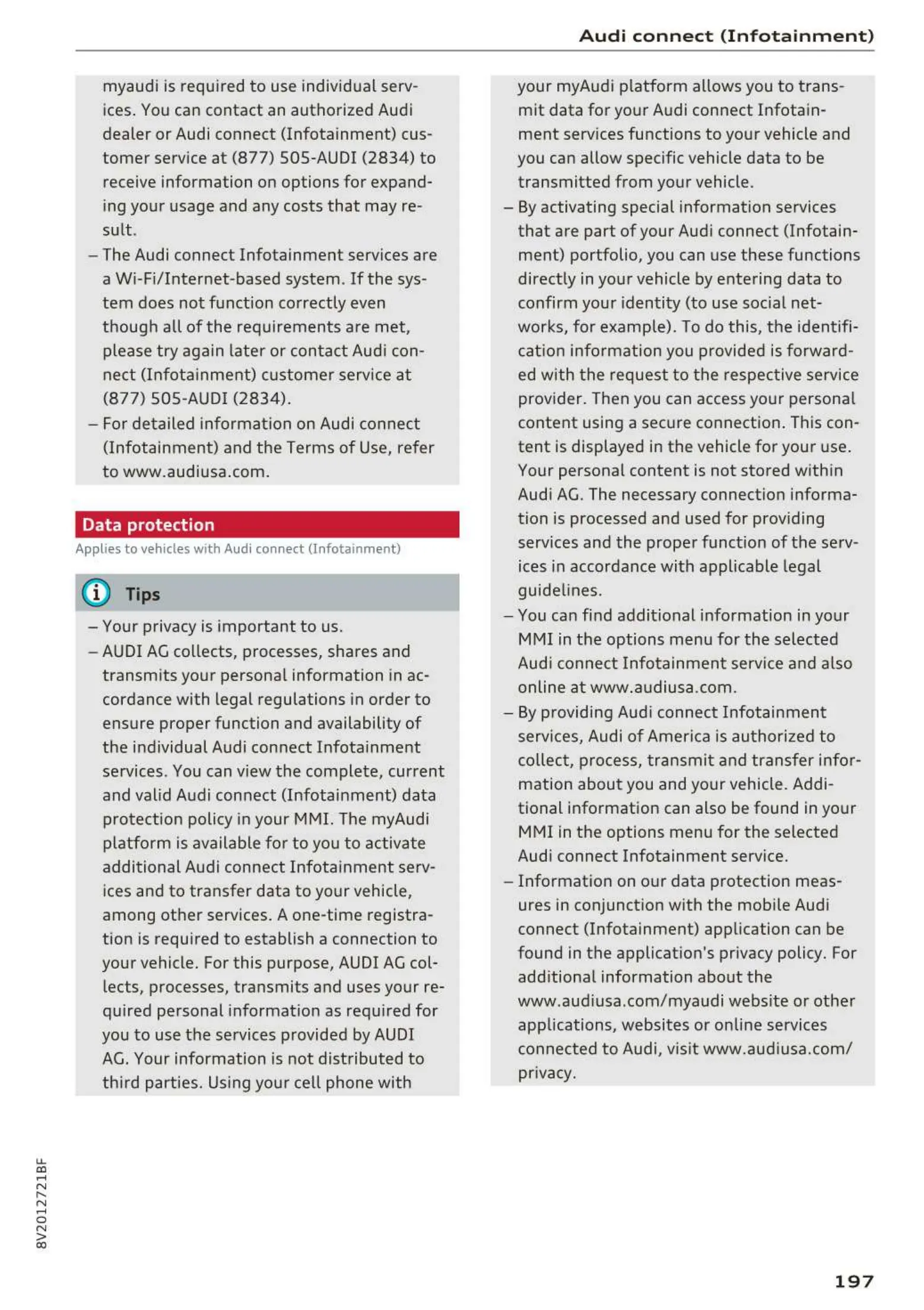 myaudi is required to use individ ual serv-