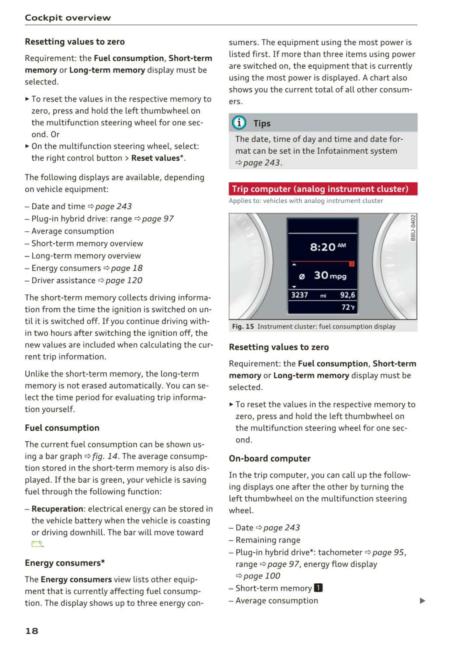 Fig. 15 Inst rument cluster: fuel consumpt ion display