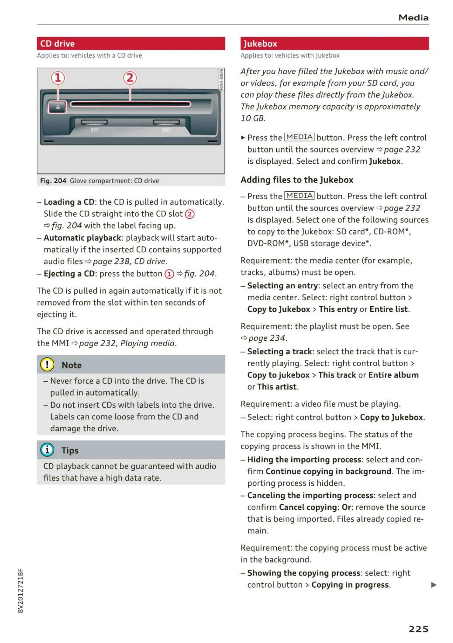 Applies to: vehicles wit h a CD drive
